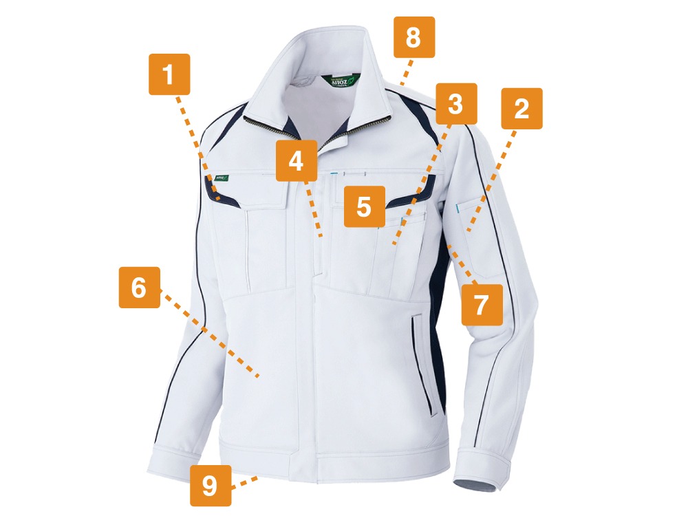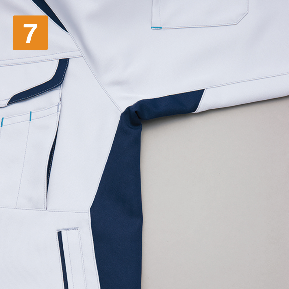 あらゆる面から動きやすさにこだわったワークブルゾンです。ポイントはその生地。軽量かつ、バネのように加工し優れた伸縮性をプラスしたライトフィックス素材を使用することで、高い機動性を実現しています。また、伸縮回復性にも優れており、体の動きに沿いつつも型くずれしにくい特性を備えています。さらに、生地そのものの持つストレッチ素材に加え、スポーツカッティングが施されることでさらに動きやすくなっているのもポイント。