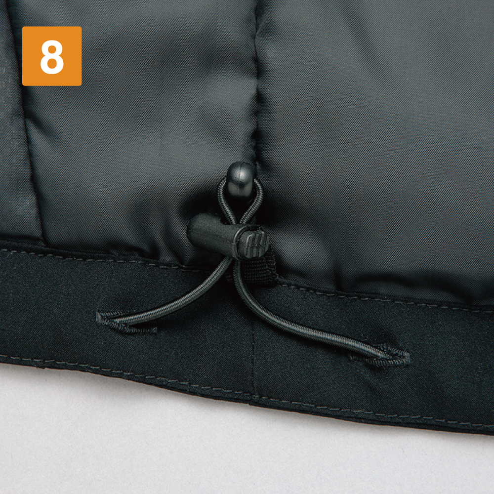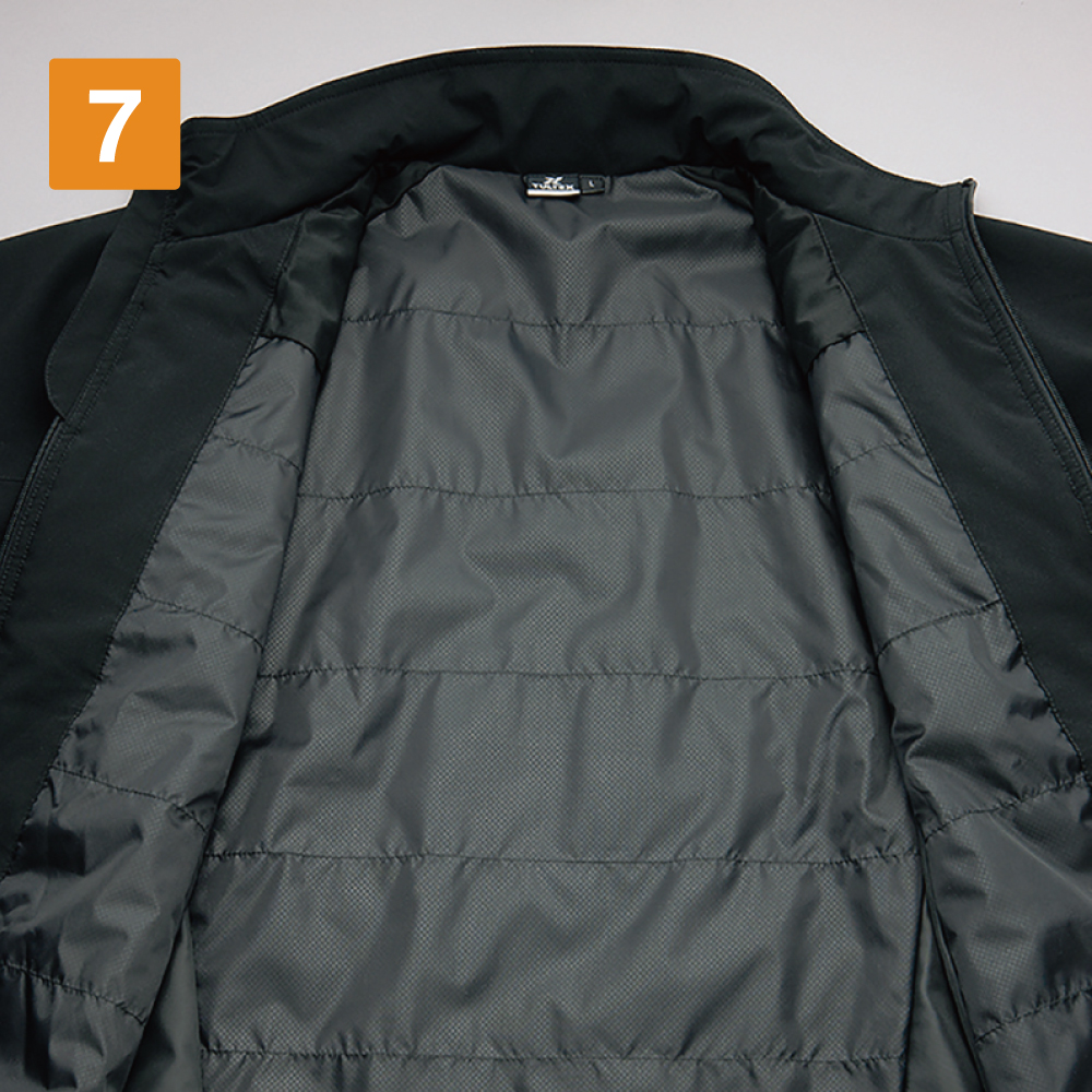 ストレッチ&軽量生地を使用し動きやすい、気軽に羽織れる防寒ジャケットです。ポイントは、15,000mmH2Oの耐水圧と1,000g/m2/24hrsの透湿度を実現した、優れた防水性能。さらに、表地とフィルムの複層構造で撥水性能と防風性能もプラス。あらゆる外的環境に対応する一着になっています。中綿は、ただ空気層を作るだけでなく、汗などの水分を吸収して熱に変える素材を使用。加えて消臭性能も備えることで、不快なニオイが気になりません。また、内側の裏地部分には体の遠赤外線を再放射するアルミ蒸着プリント加工が施されており、保温効果をより高めています。