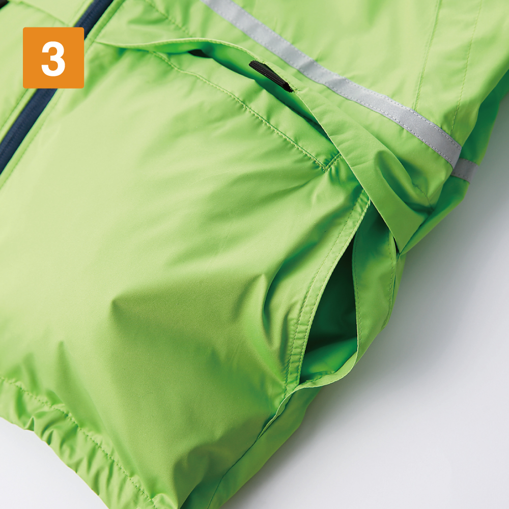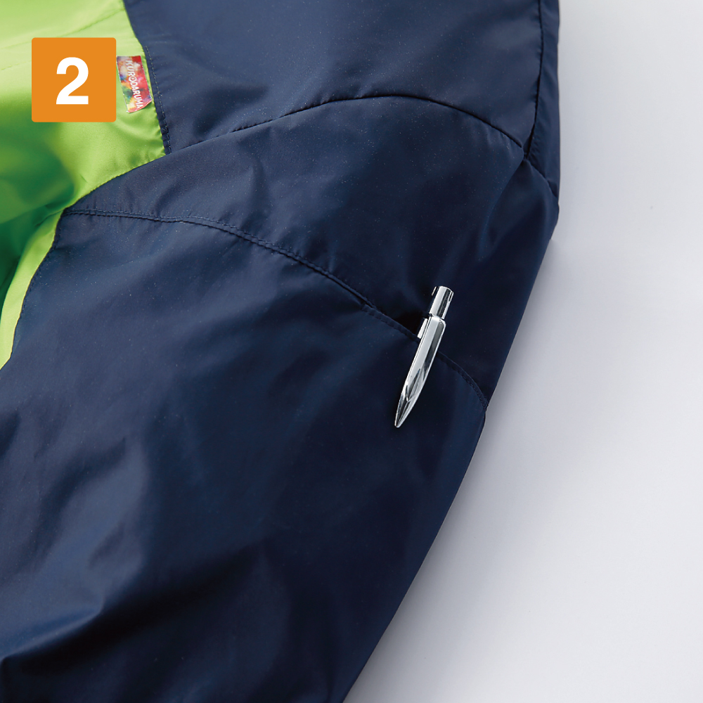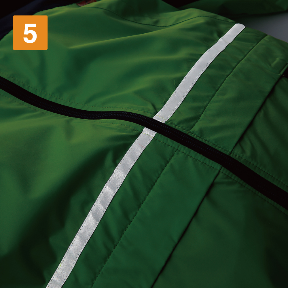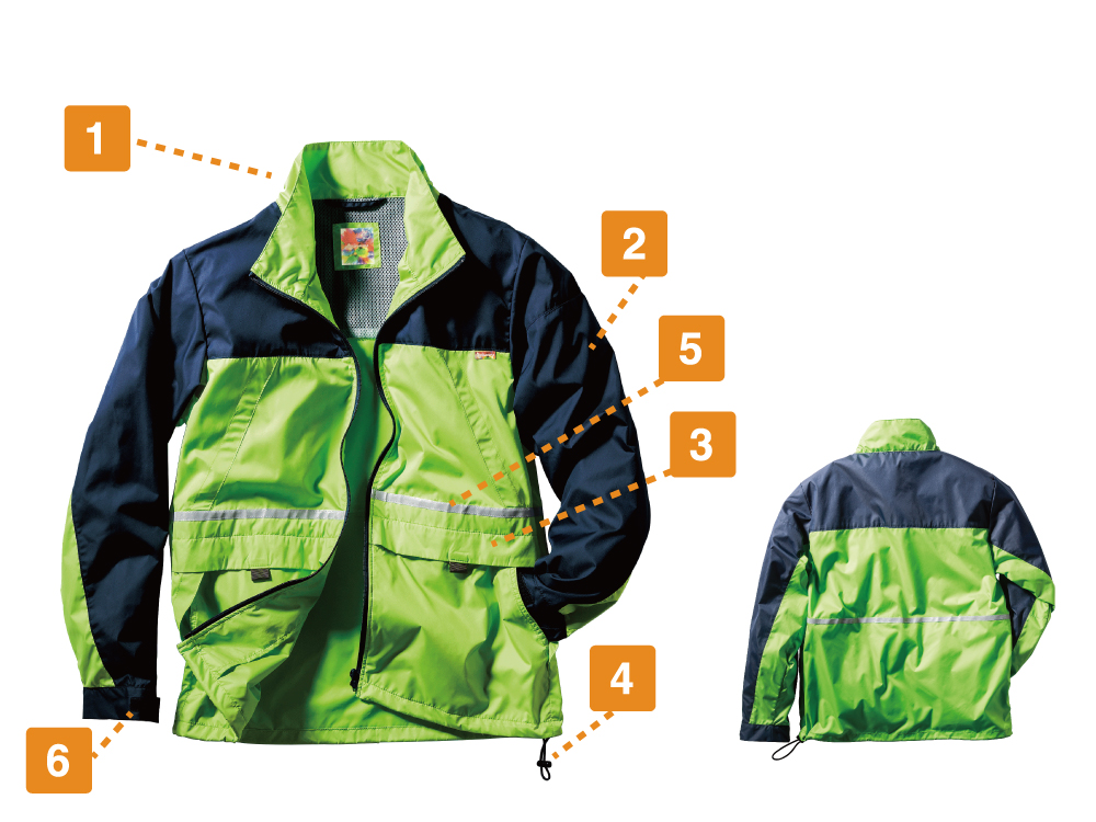 おしゃれなアウトドアウェアのようなデザインが人気のワークジャケット。抜群の収納力で高い作業性を実現した一着です。ジップアップ可能な高めの襟で寒い季節にも対応。長いシーズン活躍してくれます。両脇にはデオサンダーテープが縫い込まれており、静電気の発生や不快なニオイを抑えて、長時間の着用でも快適に過ごせるのがポイント。また、安全面にもしっかり配慮したウェア。前面から背面、腰部分の全周に反射テープが配置されており、夜間作業の視認性をアップしています。