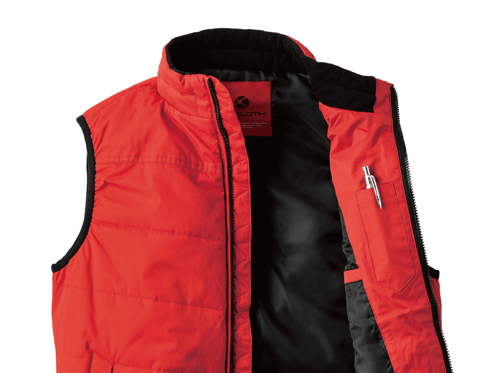 いつものウェアに気軽に一枚追加できる防寒ベスト。軽量ながら体温をしっかり閉じ込める中綿によって、冬場も快適にお過ごしいただけます。本体素材には、さらりとした肌ざわりが特徴のドビー生地が使用されています。 立体的な生地表面は、ほどよい光沢があり高級感をプラス。また、PVCコーティング加工によって優れた撥水性、防風性を備えているのもポイント。中綿による保温性能だけでなく、コーティングによって熱を内側にキープしてより暖かな着心地を実現しています。