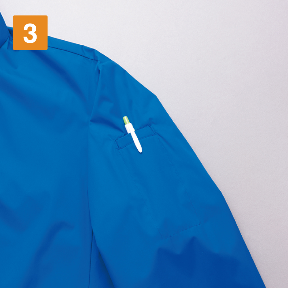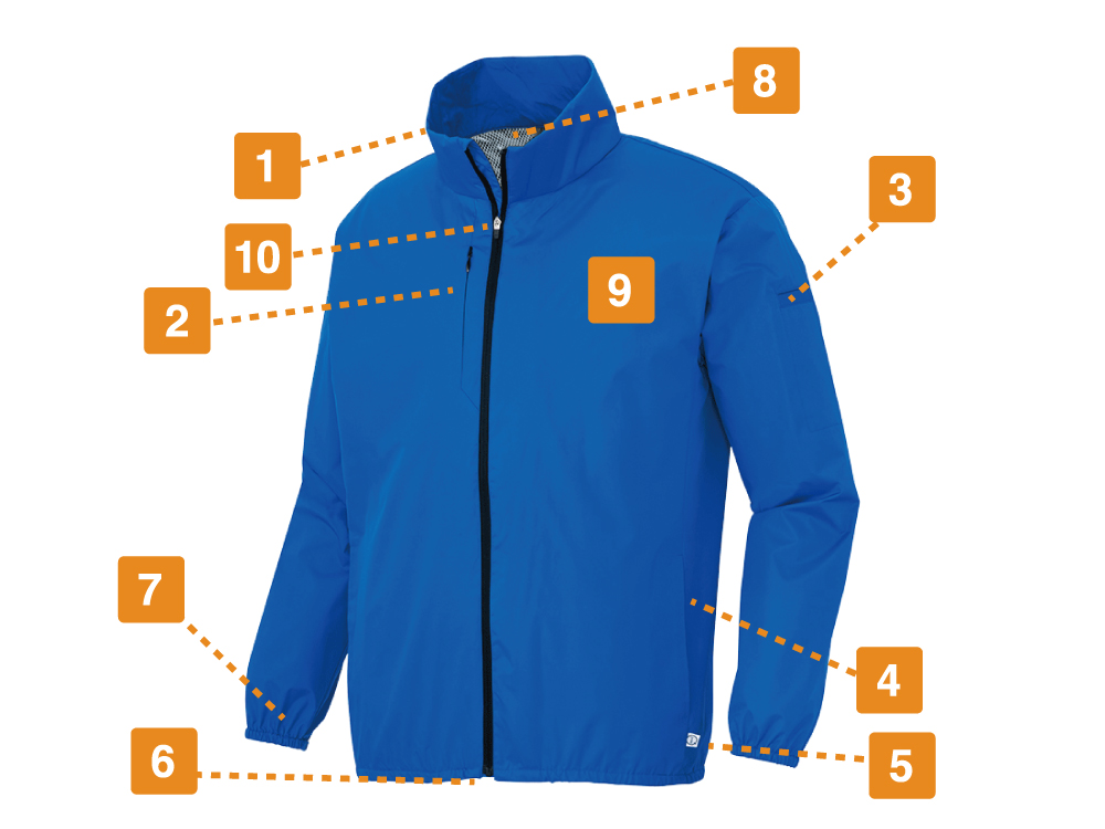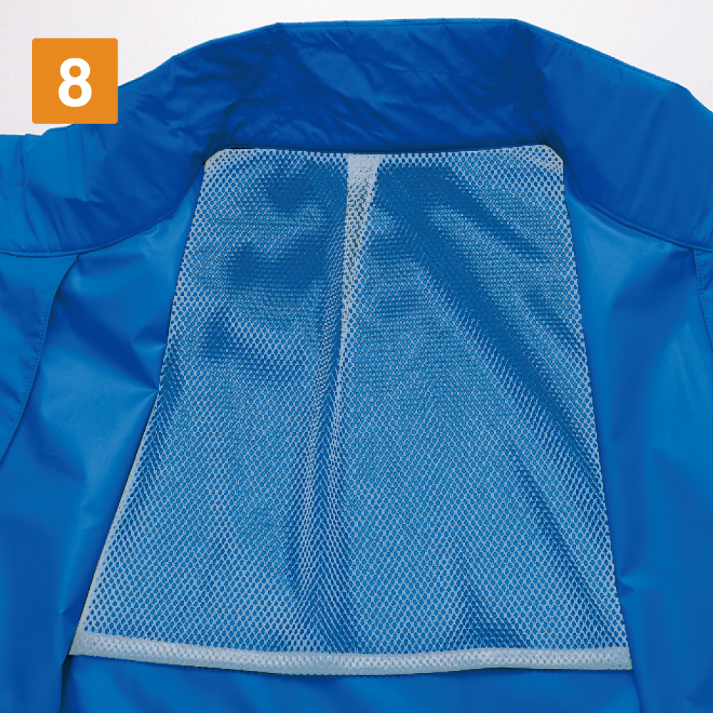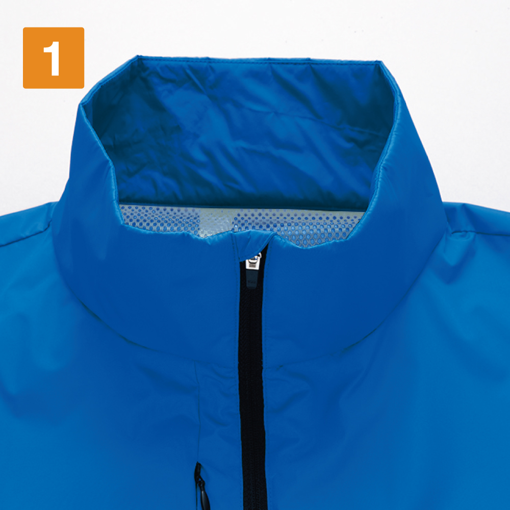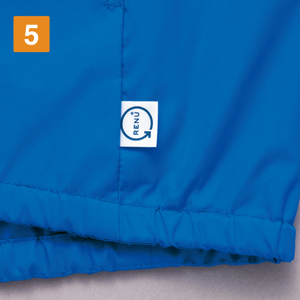 環境や未来の地球を守る観点から、リサイクル生地を100%使用したブルゾンです。導入によって環境保護への取り組みやSDGsへの賛同にも繋がるウェア。また、理念だけでなく機能面も優れており、軽撥水加工によって突然の雨など環境の変化にもスマートに対応可能です。防風性能も備えており、秋のアウターとして冷たい風の侵入をシャットアウトしてくれます。また、肩裏と背裏にはメッシュ生地が使用され、べたつきや蒸れが気になりにくいのもポイント。