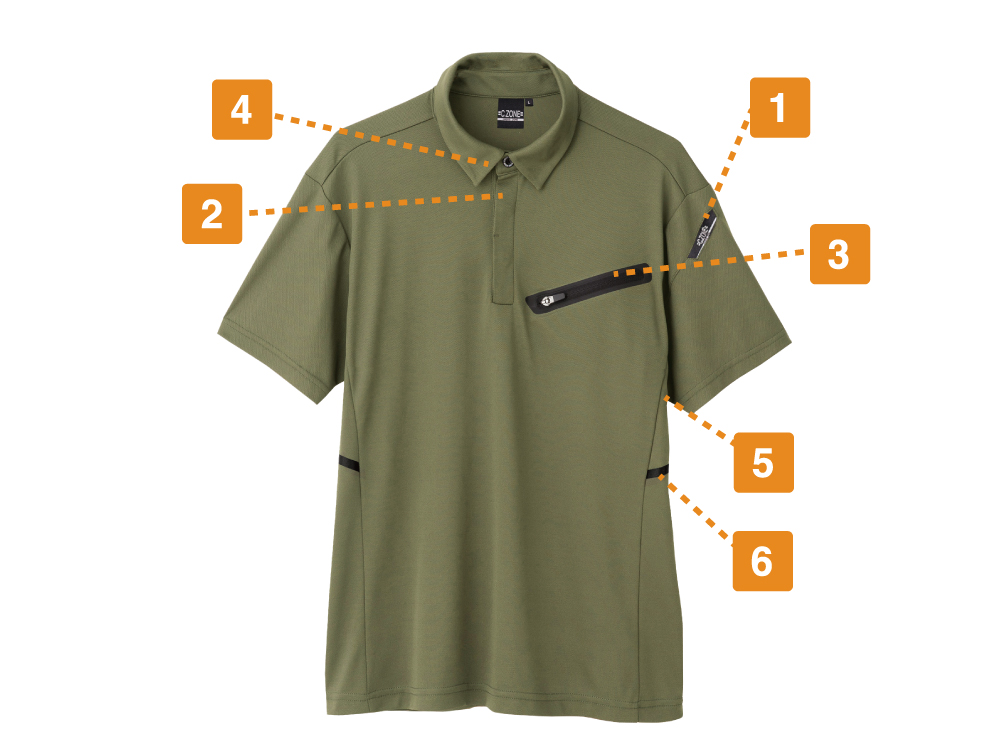 充実の機能で夏季の作業をアシストするポロシャツです。本体生地に使用されているプレーティング冷感鹿の子は、ナイロンとポリエステルの2層からなる接触冷感素材。Q-max値 0.256の接触冷感性を持ち、暑い季節もひんやりと着用いただけます。また、優れた吸汗性と速乾性を備えることで、汗をかいてもすぐにさらりと快適に。ストレッチ生地を使用し動きやすさも抜群で、現場作業でもストレスを感じさせません。さらに、紫外線カット機能によって日焼けから肌をガード。夏場の「快適」にとことんこだわって設計された一着です。