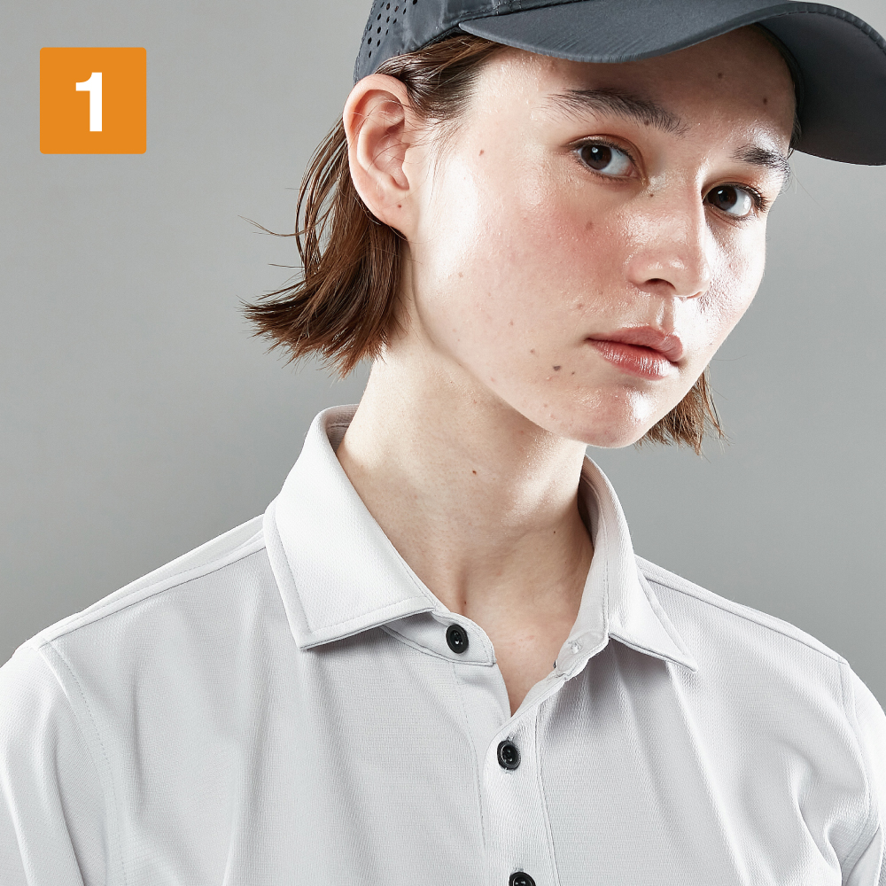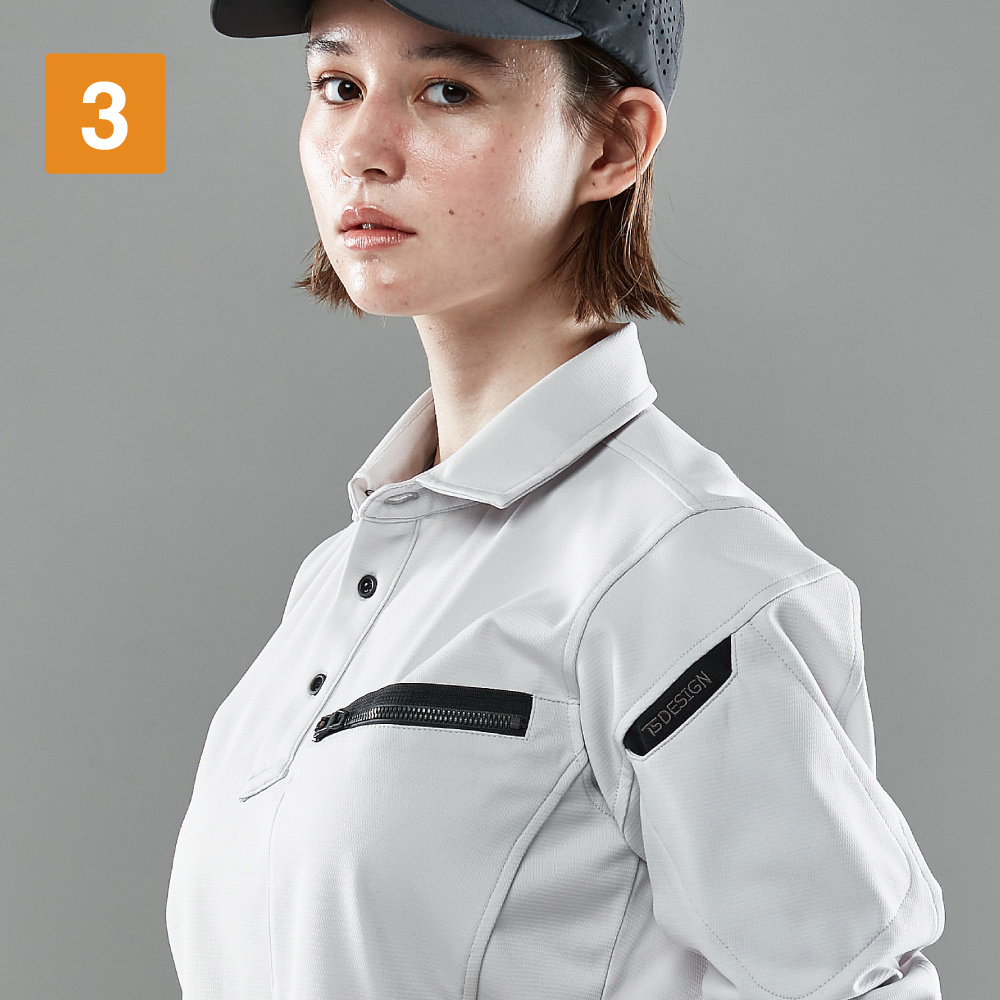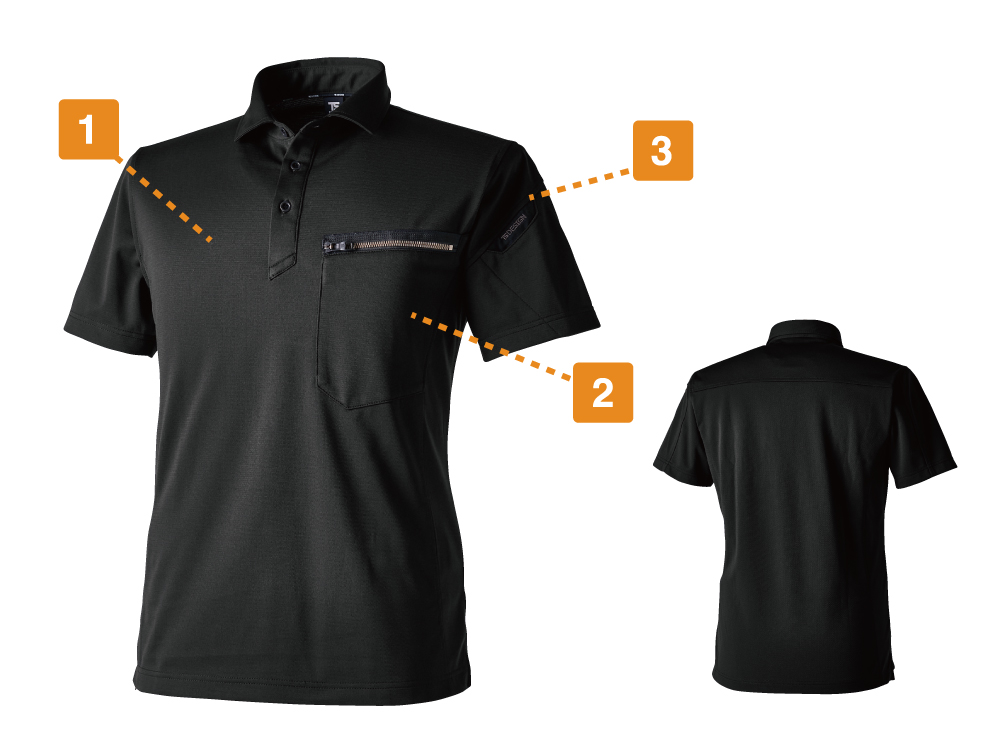 着心地にこだわって設計された、ワークポロシャツ。一枚でもおしゃれに着こなせる高いデザイン性だけでなく、充実の機能を備えたウェアです。生地には伸縮性に優れたトリコットと綿の混紡素材が採用され、動きやすいのが嬉しいポイント。さらに、肌に生地が点で接触することで、さらりとした質感や吸汗・速乾性能を実現しています。耐久性が高く、形態安定性にも優れ、お手入れを重ねても型崩れしにくいなど、ヘビーユーズにもぴったりです。