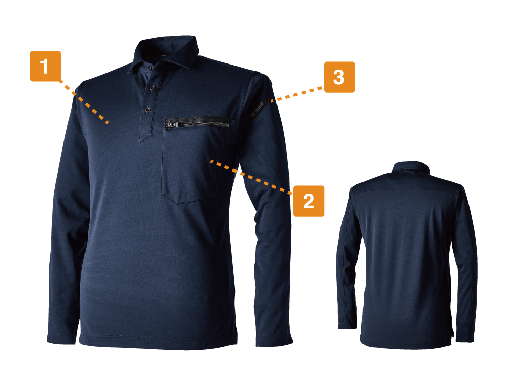 長時間心地よく過ごせるよう設計された、長袖ポロシャツ。やわらかな生地が心地よく、袖口はリブでやさしくフィットします。また、充実の機能にも注目のウェア。生地に使用されているのは、伸縮性に優れたトリコットと綿の混紡素材。動きやすく、生地と肌が点で接触するため、べたつかずさらりとした肌ざわりが魅力です。また、吸汗・速乾性能により夏場も快適。生地は耐久性が高いだけでなく、洗濯や着用による型崩れを抑える形態安定性にも優れており、毎日の着用でも長くご愛用いただけます。