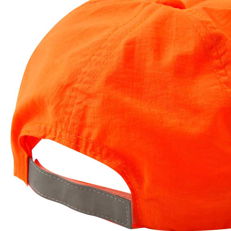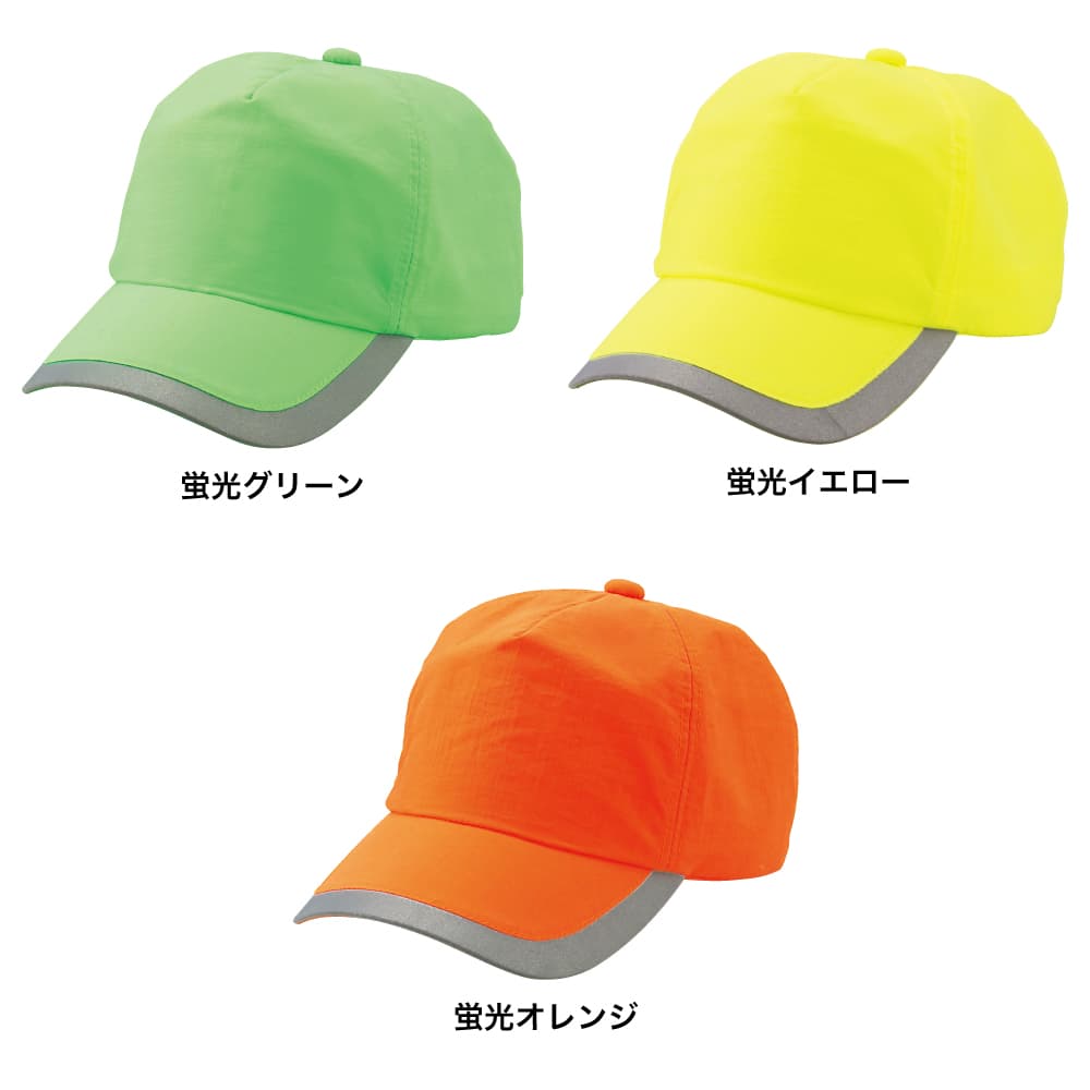 夜間の活動に適したアイテム。本体には発色がよく視認性の良い蛍光カラーを使用し、庇先と後部の調整バンド部には反射素材を装着しおります。暗闇で反射素材に光があたると光が反射し視認性がUPします。夜間のみならず日中の使用も可能です。