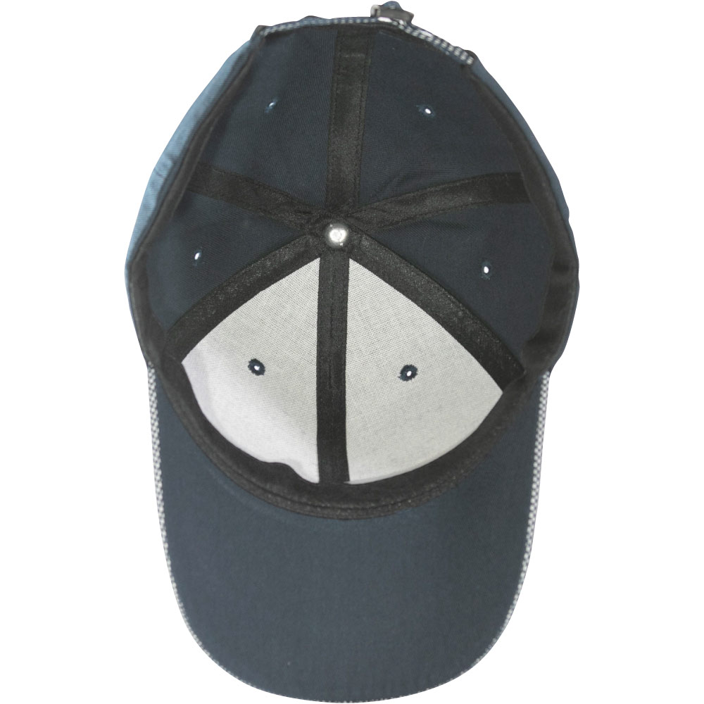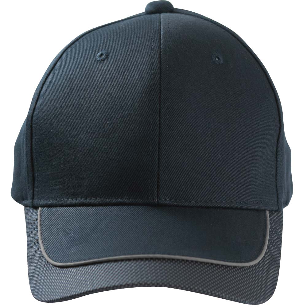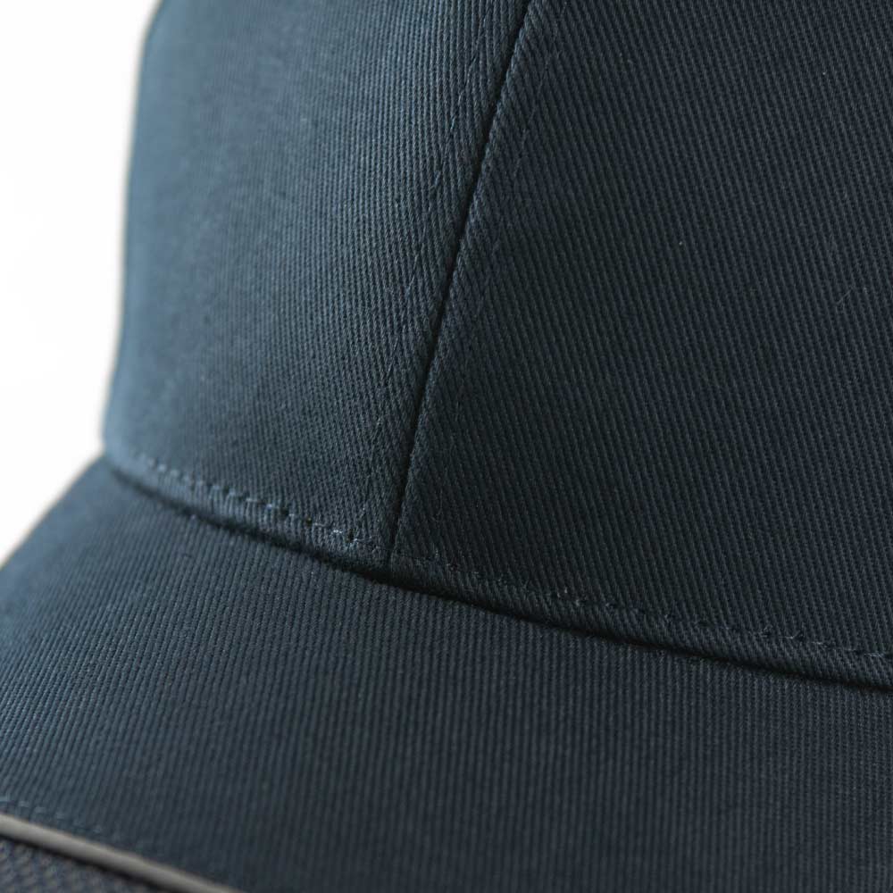 庇が切り返しデザインになっており、切り返しの境目にグレー色の反射素材を使用しております。先端にはメッシュ調の生地を使用。他に無い庇のデザインがとっても印象に残るキャップです。ワークユニフォーム用や防犯パトロール用にお勧めのキャップ。。