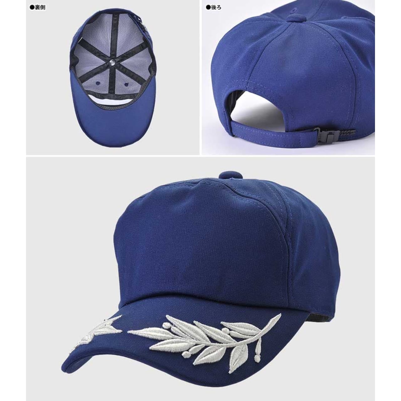 庇の月桂樹が盛り上げ刺繍のキャップ