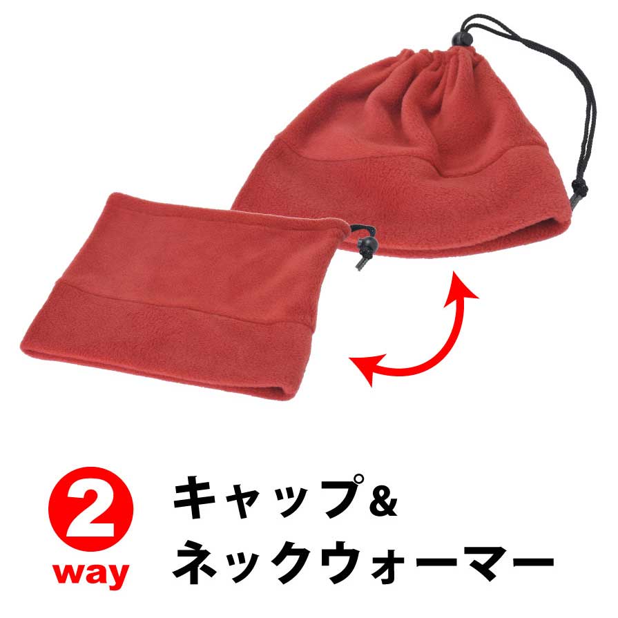 ニット帽にもネックウォーマーにもなる器用なアイテム。どちらで使用するにしてもフリース素材でとってもあったかいです。ニット帽で使用する場合はてっぺんが完全にふさがらない為、ネックウォーマーとして使用するのがおすすめです。