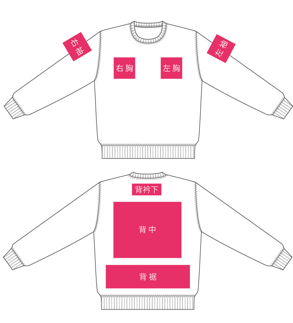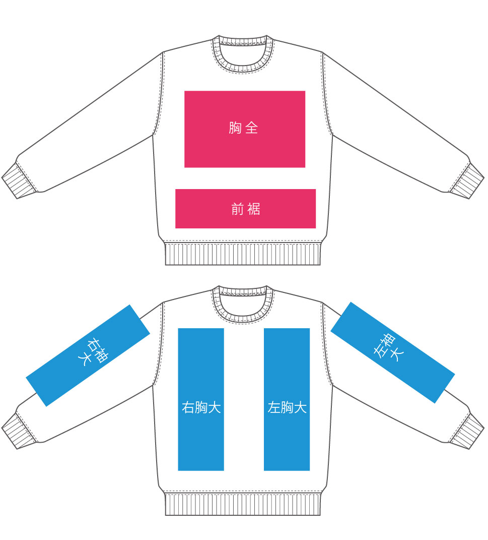 | 加工箇所例 | 左胸、右胸、袖 | 背中 | 背中全面 | 左胸と背中 | 左胸と左袖と背中 | - | - |