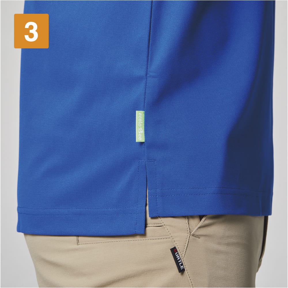 ペットボトルリサイクル素材を100%使用したエコロジカルなポロシャツ。環境にやさしいだけでなく、抜群の作業性を誇るウェアです。伸長率25%以上の高いストレッチ性を備え、どんな動きもノンストレスに。さらに、吸汗速乾性やUVカット機能など、暑い季節や屋外での着用もアシストする機能が満載。消臭テープ付きで汗のニオイをカットしているのもポイントです。デザインはフォーマルなビジネスシーンに適応するボタンダウン仕様。接客業から配送業まで、幅広い業種でスマートに着こなせるウェアになっています。