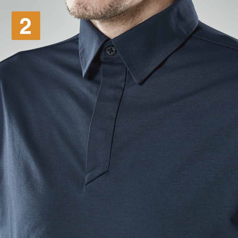 ドライな着用感でワークシーンでの「快適」をとことん追求した高機能ポロシャツ!吸汗速乾性や消臭性、UVカット性能などさまざまな機能で暑い日の着用も快適に。ほどよくゆったりとしたシルエットで、リラックスして着こなせます。首周りは台襟仕様と隠しボタンですっきりと、さらに胸ポケットのないミニマルなデザインでどこから見ても洗練されたスタイルを演出します。カジュアルすぎないスタイリッシュなルックスは接客のあるお仕事にもおすすめです。