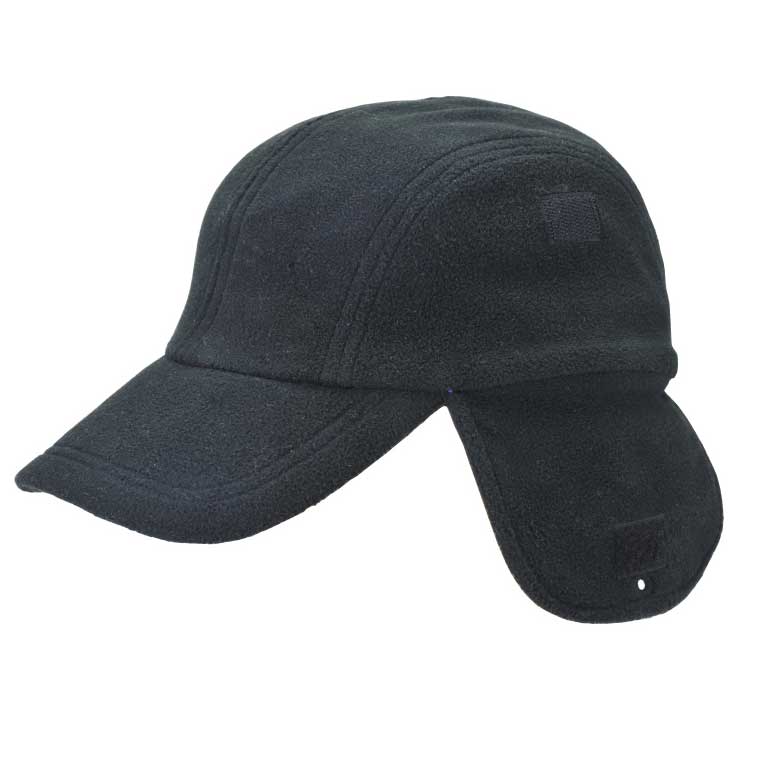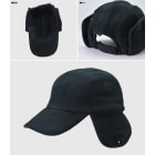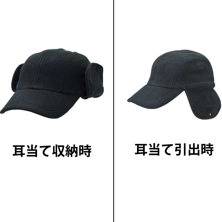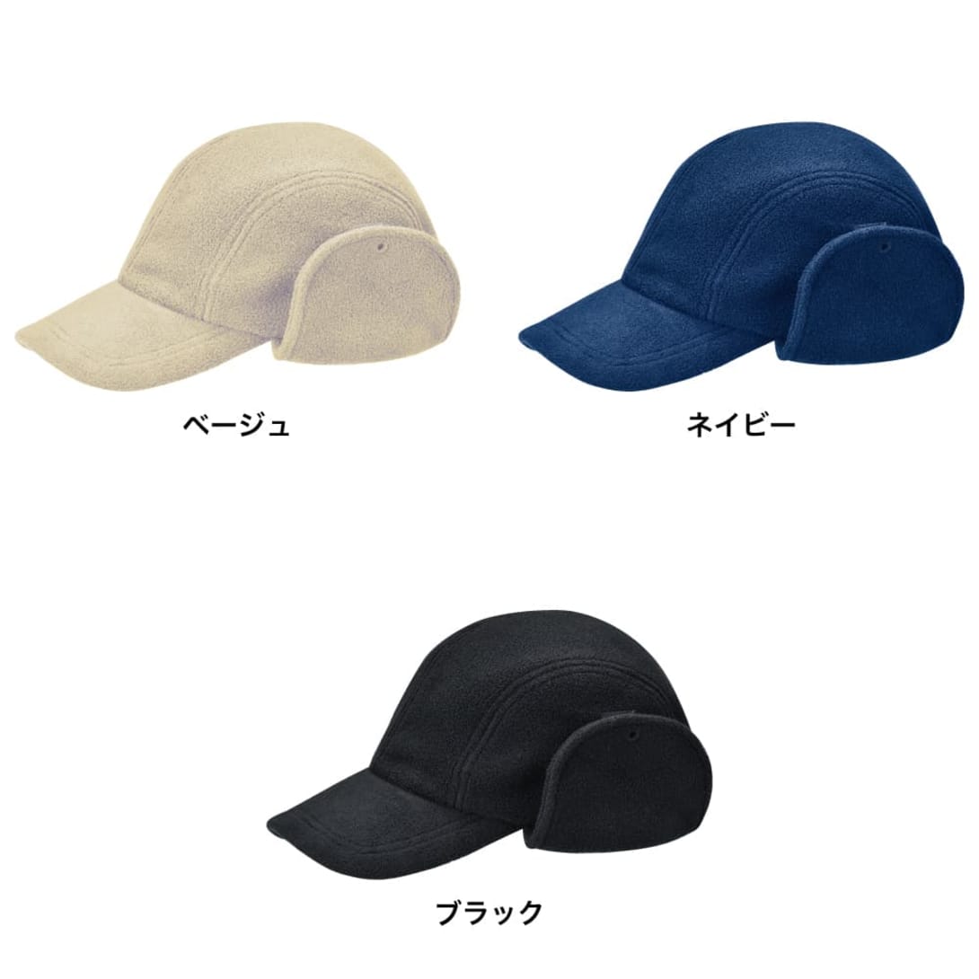 両サイドに耳当てがついたフリース素材のとってもあったかいキャップです。耳当てを使用しない時は本体に止めておくことができます。また、耳当て下部には紐を通す穴がついており、紐を利用することにより耳当てを固定することができます。まさに気温が低い場所専用のキャップです。