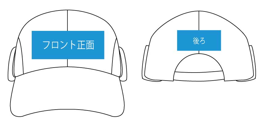 このキャップは全2か所に加工が可能。すべて刺繍のみOK