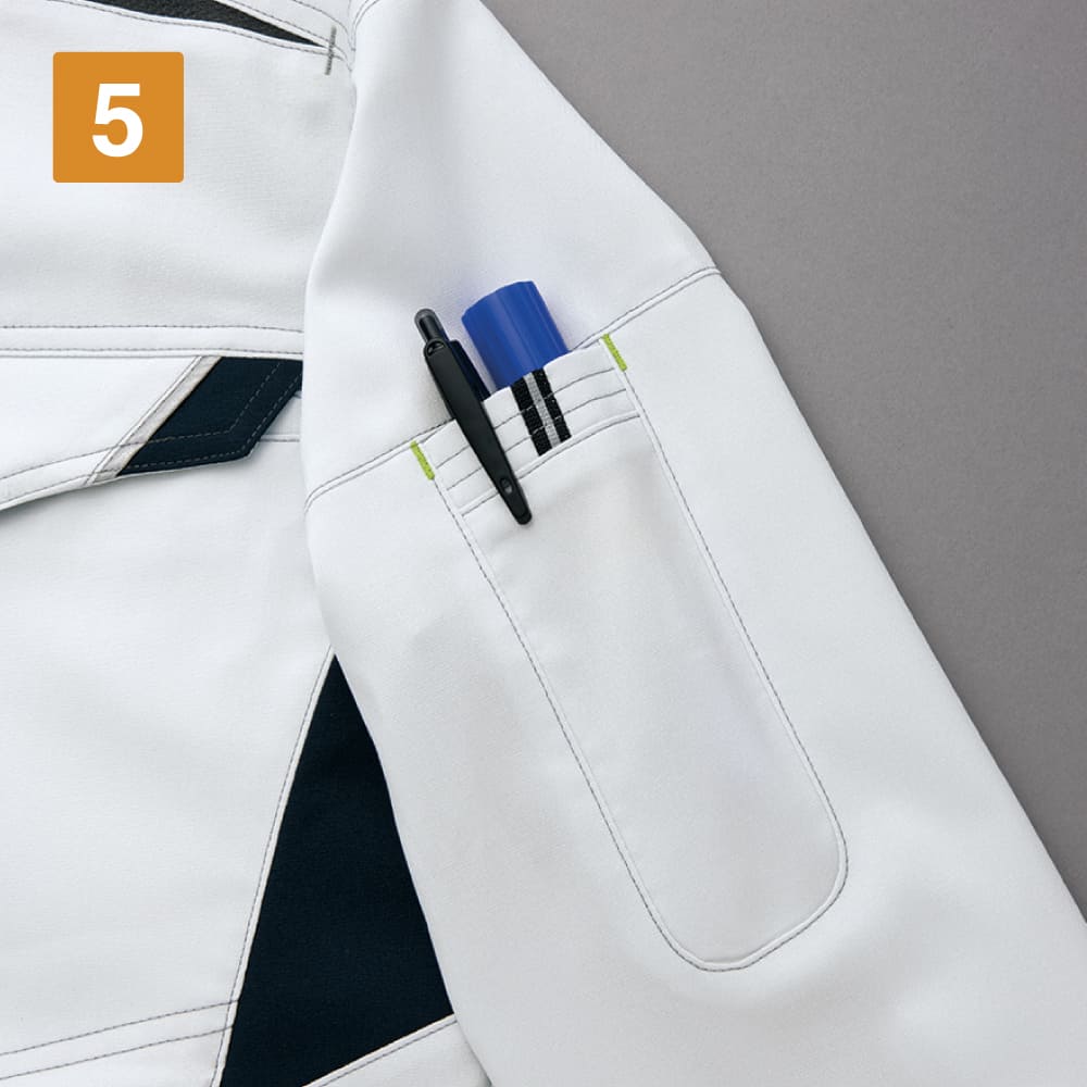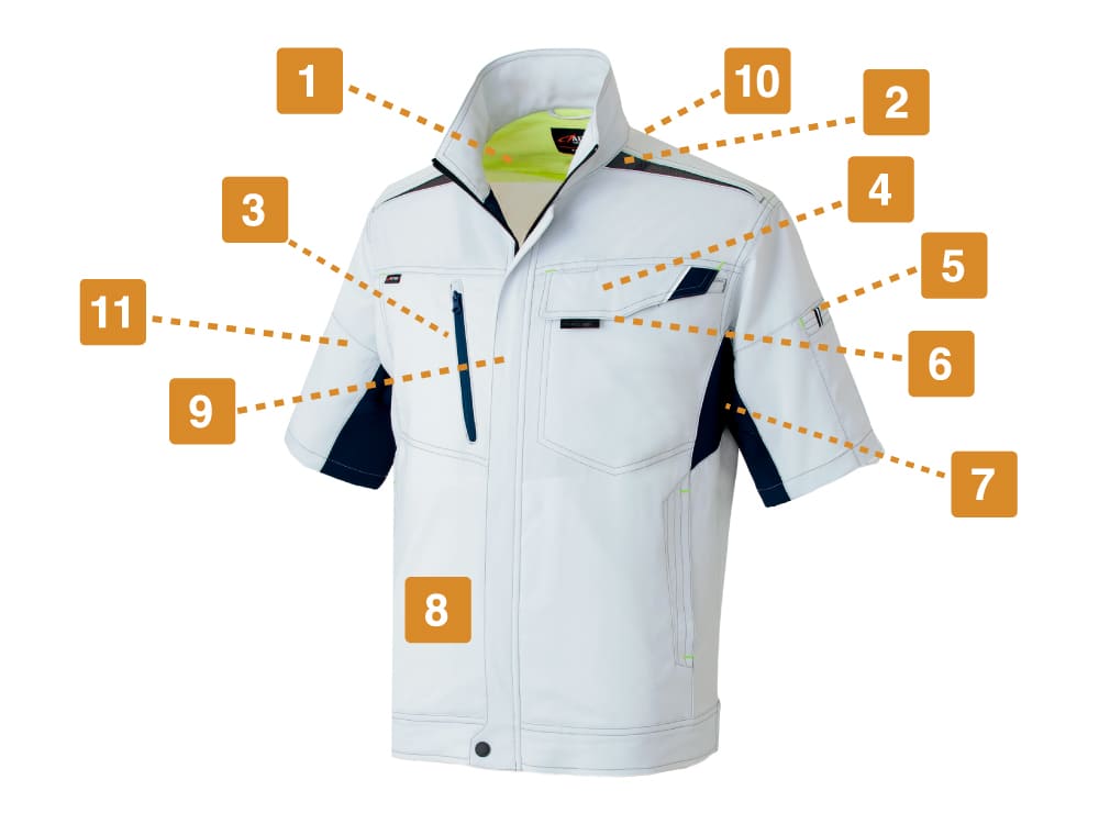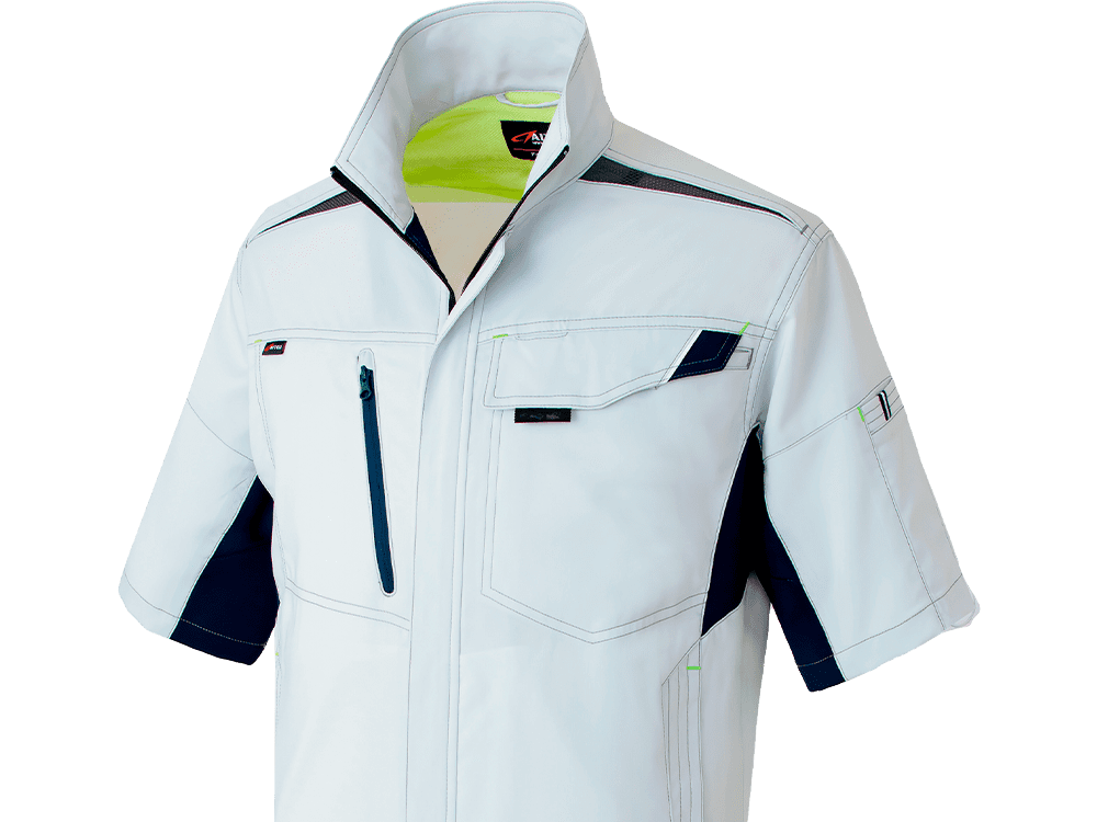 軽量で動きやすく、どこまでも快適!特殊素材ライトフィックスによる抜群のストレッチ性を活かした作業性抜群のウェアです。素材の特性を引き出すデザインとカッティングで動きやすく、一度着るともう他のウェアには戻れないほどの心地よさがあります。生地切り替えが作るシャープなデザインと洗練されたカラーで、スタイリッシュに着こなせるのもポイント。吸汗速乾性などたくさんの機能を備えた、過酷な夏のお仕事をラクにしてくれる一着です。
