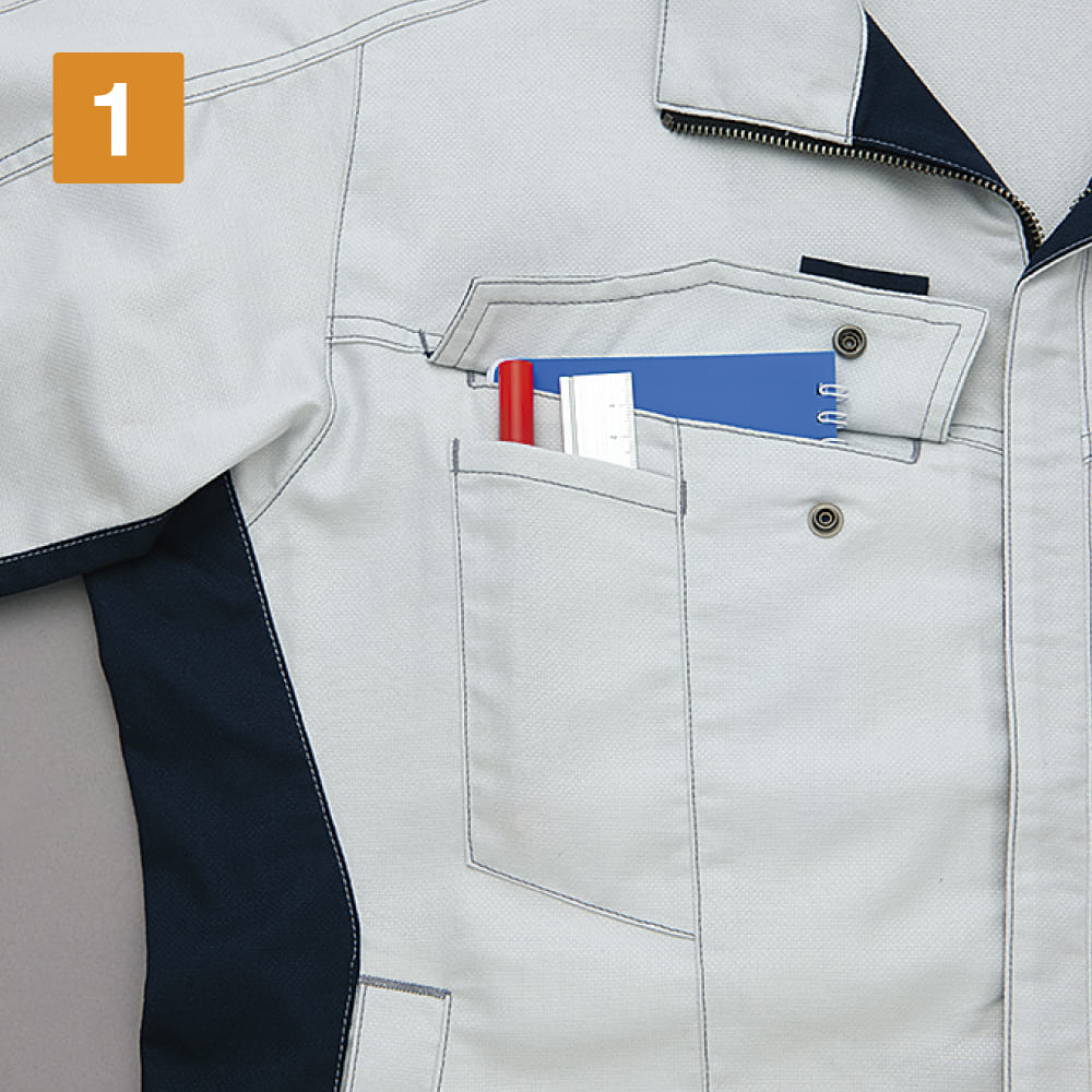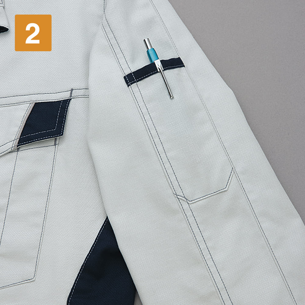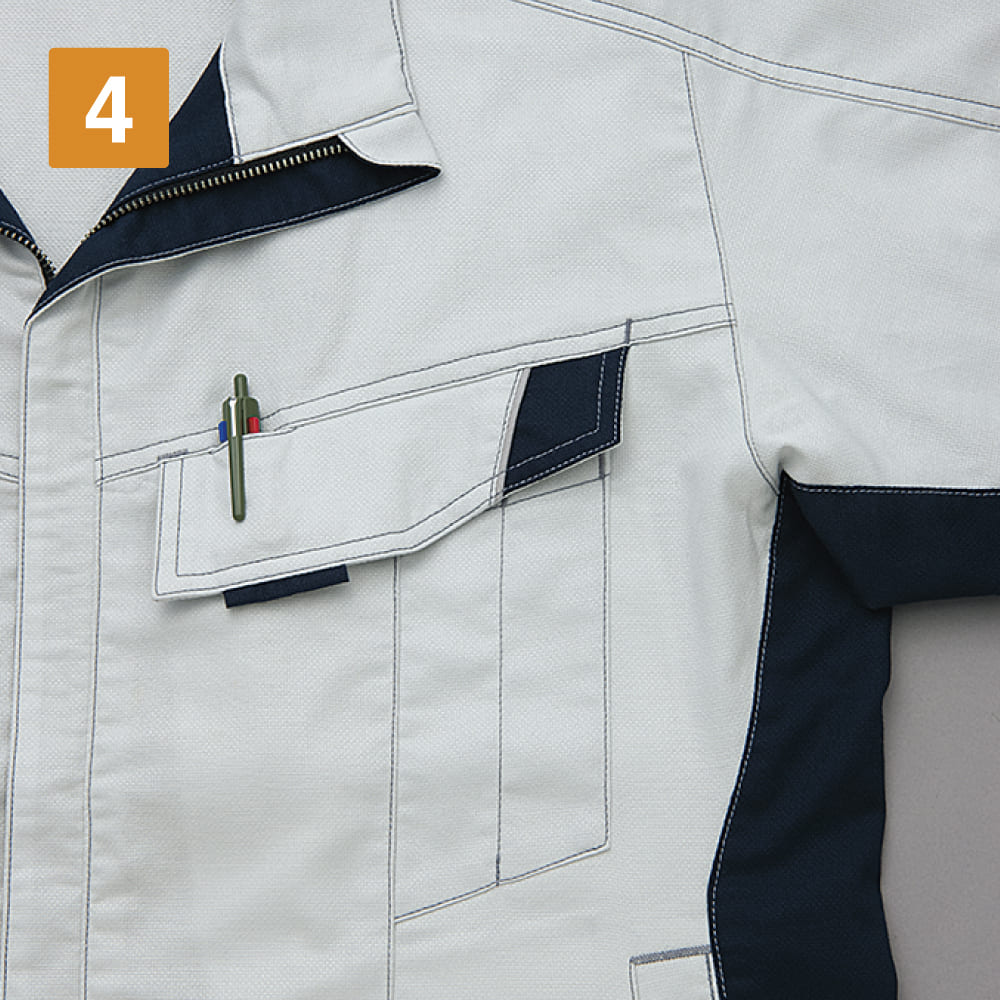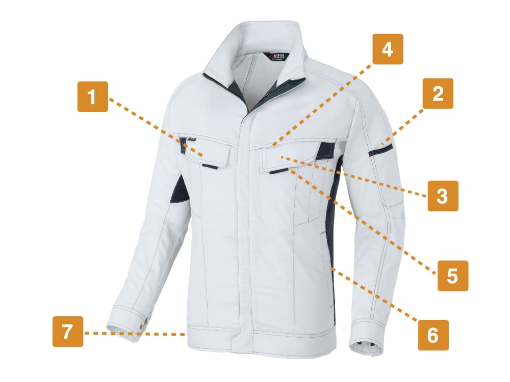 働く人の毎日を快適にしてくれる高機能ワークブルゾンです。最大の特徴は、3D立体裁断ムービンカットと、高機能ストレッチ素材バンジーテックを組み合わせた抜群の運動性にあります。ムービンカット技術による背中の立体裁断が施され、肩から腕にかけての運動性能が大幅にアップ。さらに生地は劣化しにくくソフトで伸縮性に優れたバンジーテック素材を組み合わせることで、動きやすくてストレスフリーな着用感を実現しています。