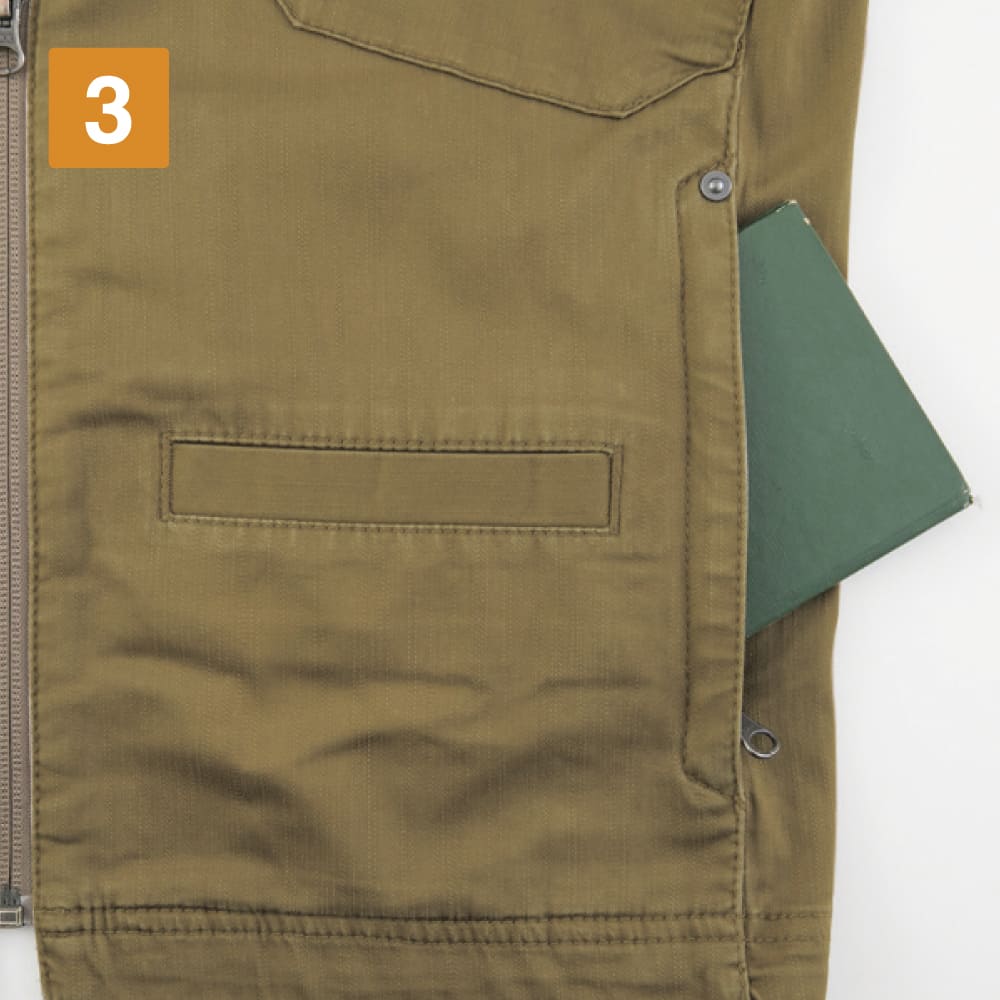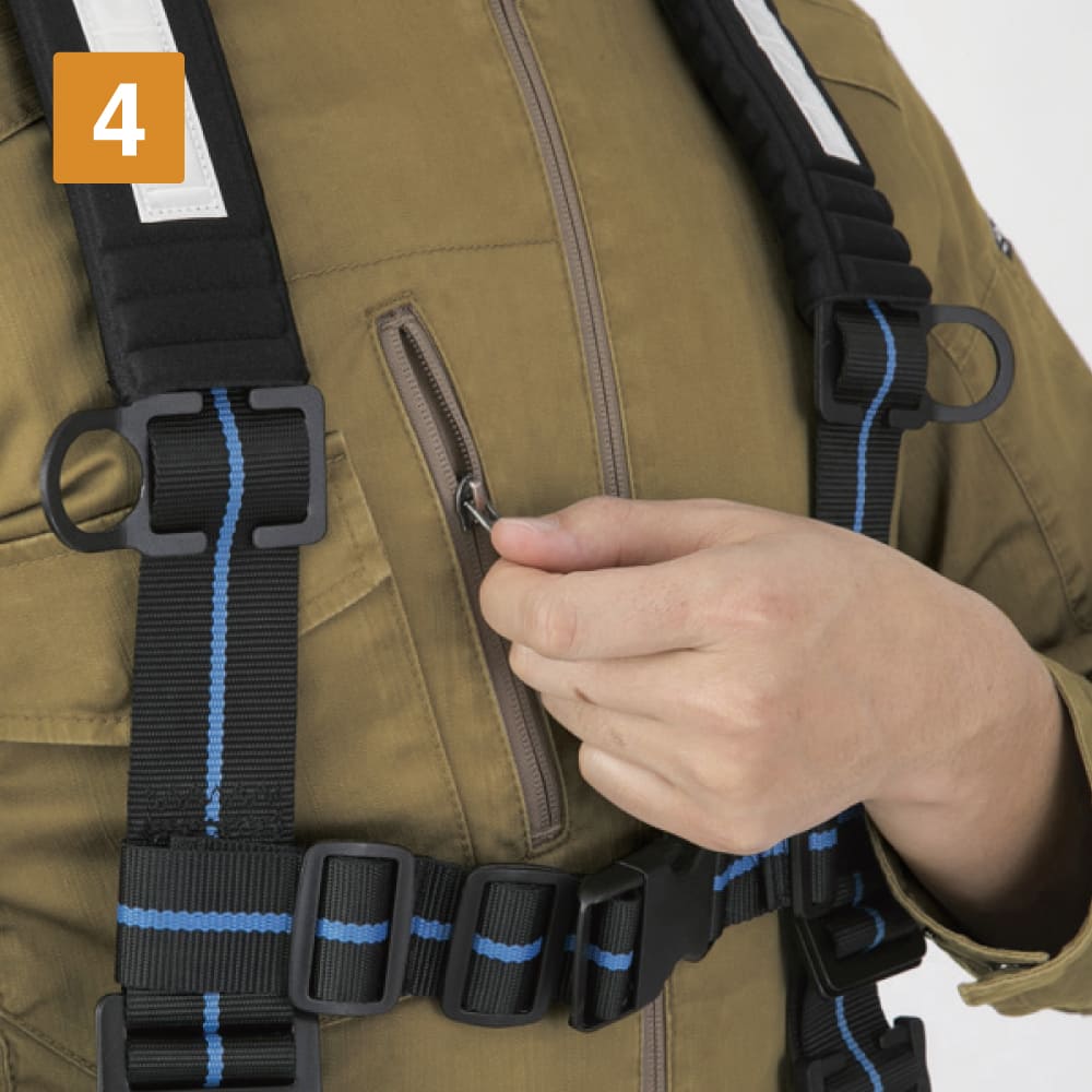 フルハーネスをしたままでも使える右胸ファスナーポケット