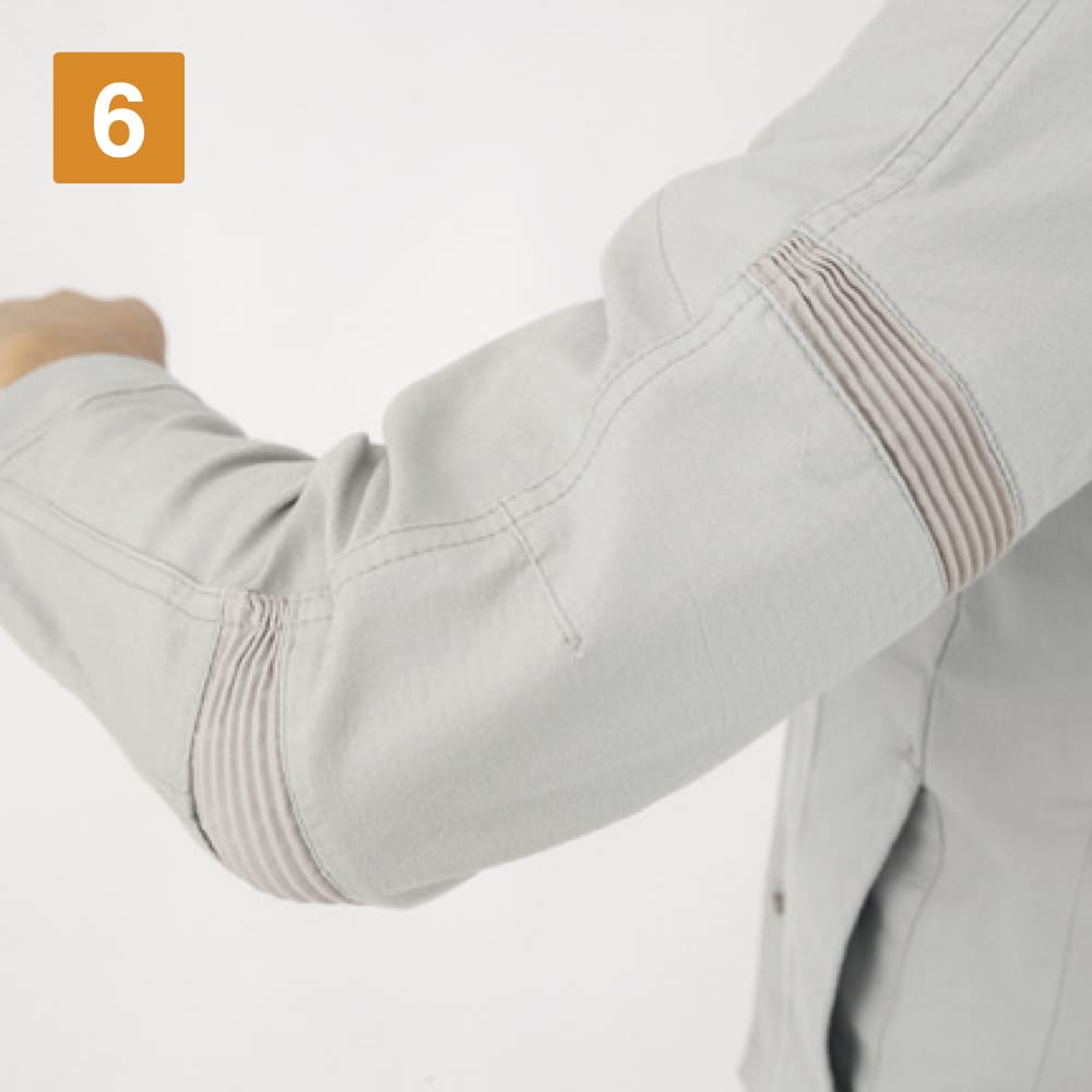 ヒジはプリーツ仕様で曲げ伸ばしラクラク