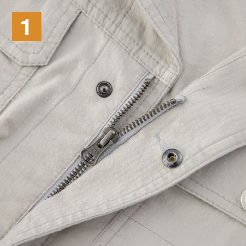 フロントはファスナー+ドットボタンで着脱ラクラク
