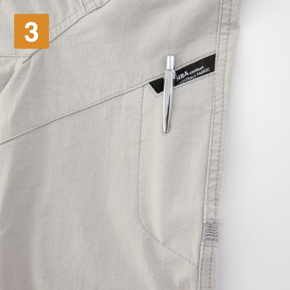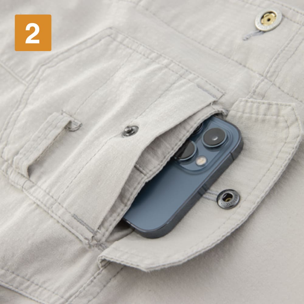 左胸はダブルポケットで長物・スマホポケットにピッタリ