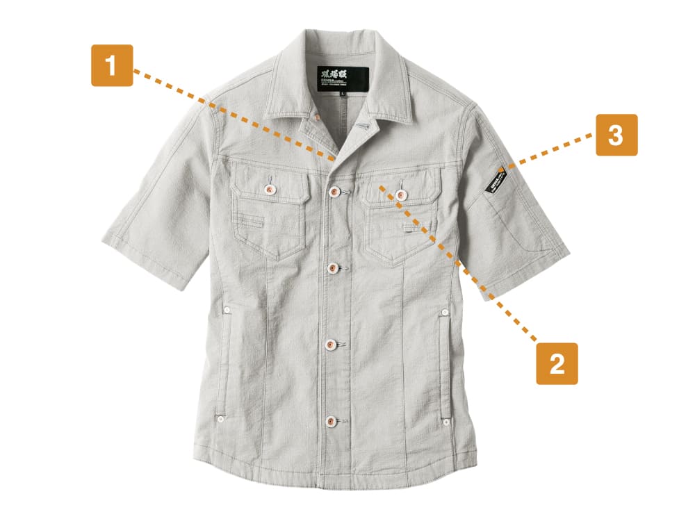 現場作業を着心地や作業性など、あらゆる面からサポートしてくれる快適ブルゾンです。作業着では珍しいストレッチサッカー素材が使用され、夏にぴったりの軽やかでさらりとした着用感に。見た目にも涼しげで、爽やかなワークスタイルを演出します。生地はバイオウォッシュ加工が施されることでよりやわらかくアップグレードされています。2WAY仕様のフロントは着脱しやすく個性をプラス。他にはないこだわりのつまった一着になっています。