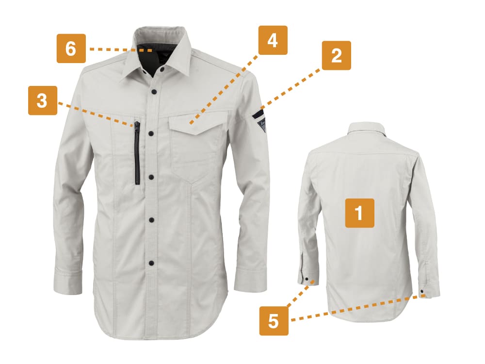 たくさんの機能で快適な作業を後押しするワークシャツ。ストレッチ性に優れたエコ素材が使用された、抜群の動きやすさを誇る一着です。生地の伸長率は20%を超え、どんな動作もノンストレスに。さらに、ひんやりとした接触冷感素材が採用され、暑い環境下でも涼しく過ごせるのがポイント。吸汗速乾性により、汗をかいてもすぐに乾いてドライな着用感が持続します。また、JIS T 8118に適合する帯電防止性能を備え、幅広い環境で安全に着用できるのもポイントです。