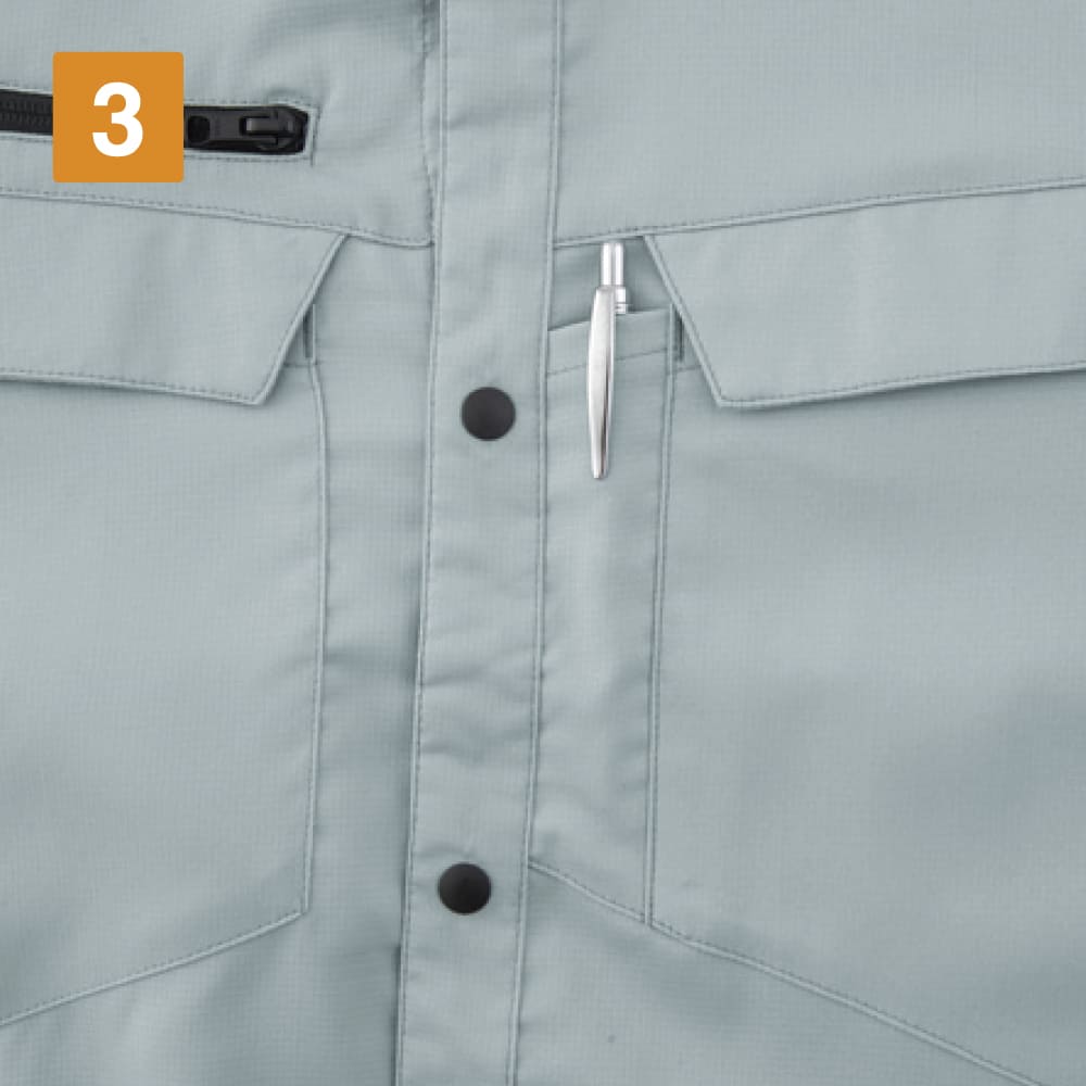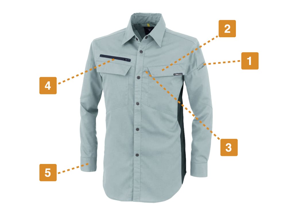 快適な作業をあらゆる角度からサポートしてくれる高機能ワークシャツです。すっきりフィットするピタリティ仕様と生地のストレッチ性で、締め付け感がないのにスマートで美しいシルエットを演出できるのもこのシリーズならでは。袖口は2段階調整アジャスターにより簡単にフィット感が調整でき、いつもノンストレスに着用いただけます。エコ素材が使用されているのもさりげないポイント。気軽にSDGsへの取り組みができる一着です。
