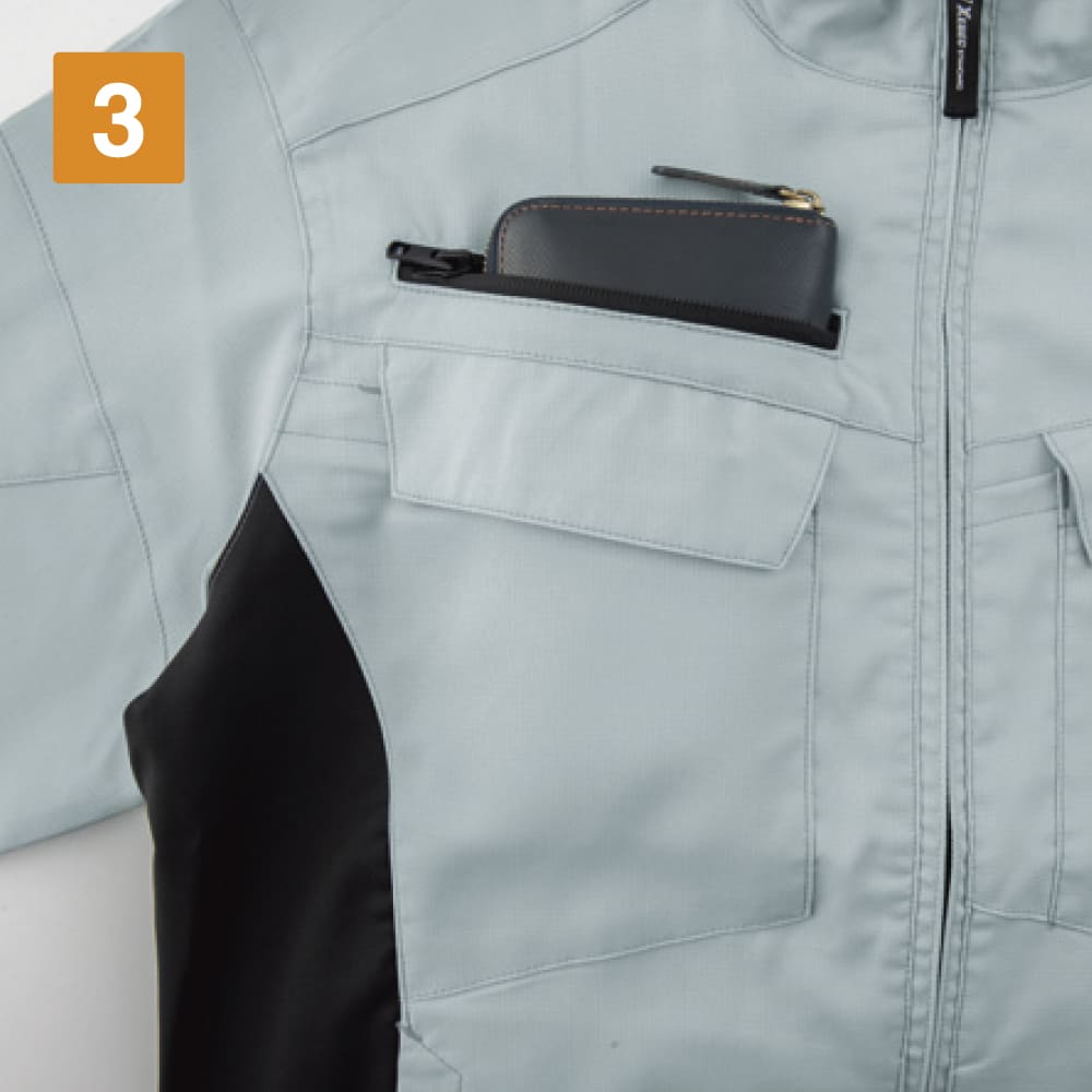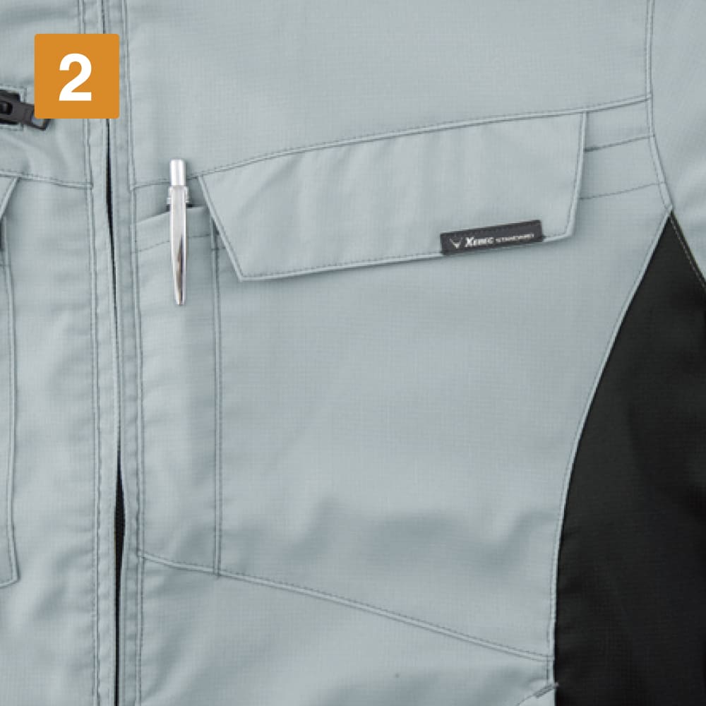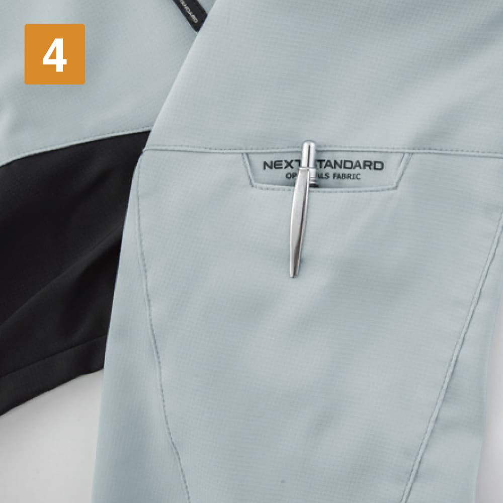 清涼感のあるストレッチ素材を採用し、抜群の着心地を実現した夏用半袖ワークシャツ。地球環境に優しい植物由来のバイオペット素材が使用されたエコロジカルなアイテムです。伸縮性に富んだ素材は、どんな動きにもスムーズに対応し作業中のストレスを軽減します。さらに、吸湿性のある裏綿素材が汗を素早く吸収し、快適な着心地をキープ。JIS規格に適合した帯電防止性能を備えており、幅広い現場で安全に着用できるのもポイントです。