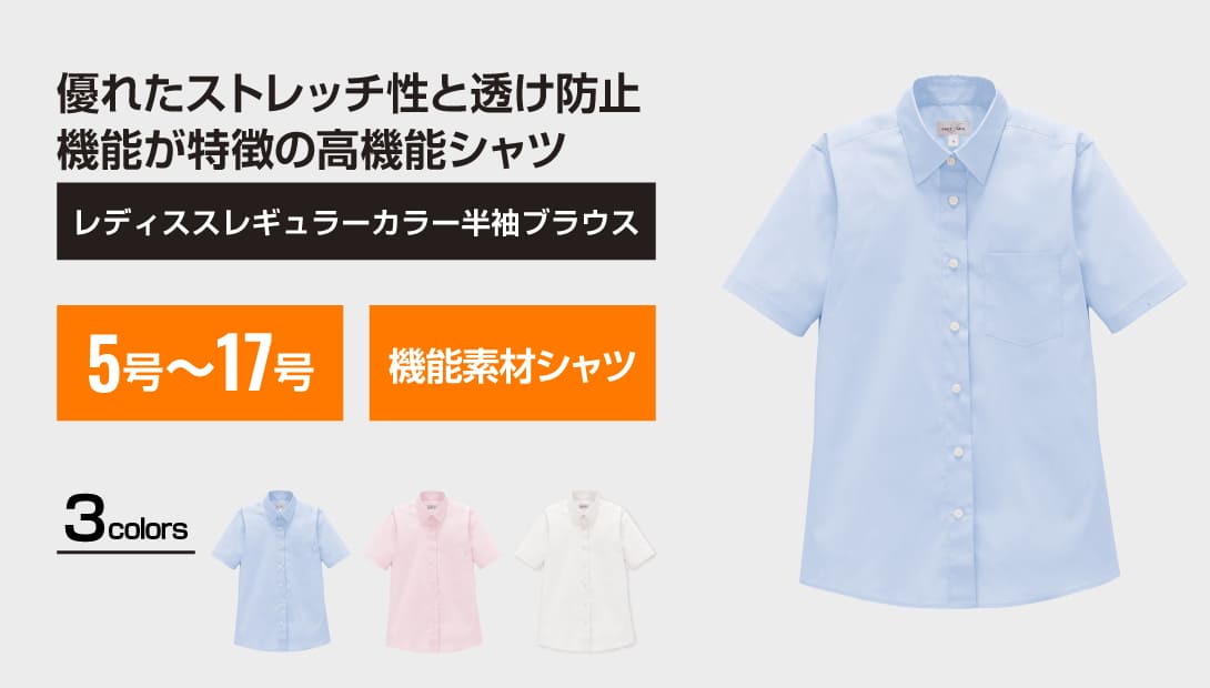 軽やかな着心地のブロード生地でありながら特殊な糸を使用し、透け防止機能を備えているから1枚でも◯。下着が透けにくいのは嬉しいポイントです。また、紫外線が気になる季節に嬉しいUVカット機能も備えています!屋外だけでなく、屋内でも紫外線対策は必要と言われている今、ぜひデイリーユースしていただきたい一着です。また約20%伸びるハイストレッチで良好なキックバック性(戻り)も備えているから動きやすさも抜群で、さらに抗菌防臭、汗じみ防止機能まで兼ね備えています。ソフトな風合いで肌触りもよく、女性らしいシルエットも◎。5つの高機能に加え、「エコテックス®メイドイングリーン」まで取得したハイスペックシャツです。