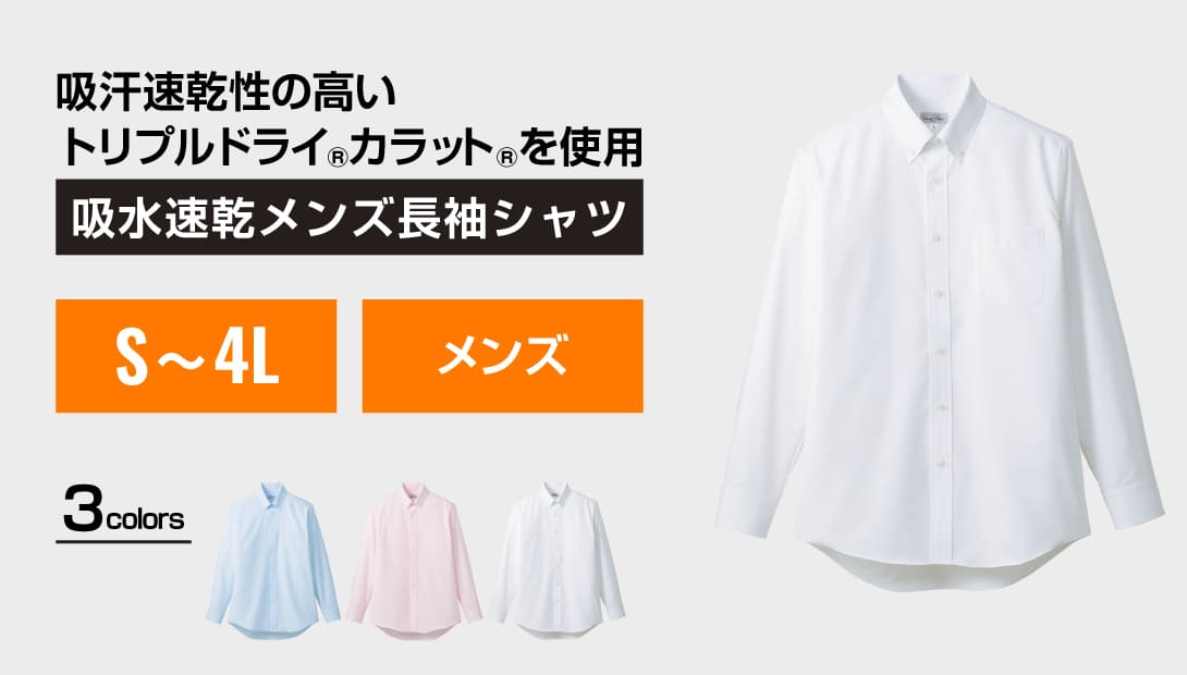 優れた吸水速乾性を持つトリプルドライ®カラット®素材を使用し、汗冷えやベタつきを抑えてくれます。肌面が凹凸状になっていて、肌に触れる凸部分が撥水ポリエステル、凹部分が普通の吸水性ポリエステルという特殊構造で、肌への濡れ戻りが大幅に軽減されているのがポイント。さらりと夏場快適であることはもちろん、防寒アウターの中で汗ばんだインナーの嫌なひんやり感も大幅に軽減し、ワーカーの味方に。ぜひ秋冬のインナーとしてもお使いいただきたいオールシーズンに対応する長袖シャツです。