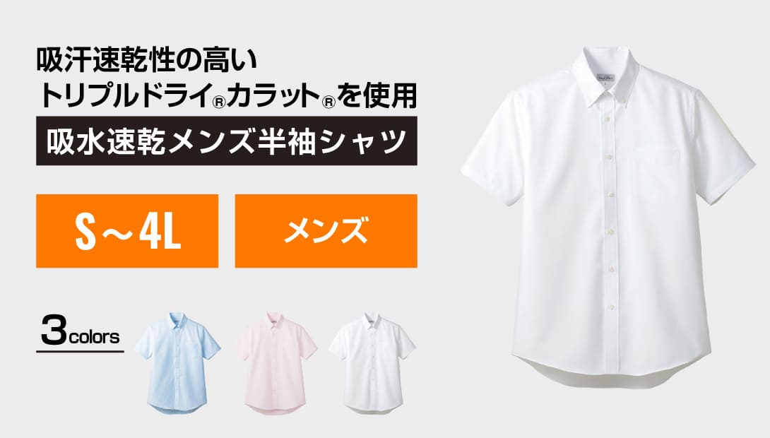 優れた吸水速乾性を持つトリプルドライ®カラット®素材を使用し、汗冷えやベタつきを抑えてくれます。肌面が凹凸状になっていて、肌に触れる凸部分が撥水ポリエステル、凹部分が普通の吸水性ポリエステルという特殊構造で、肌への濡れ戻りが大幅に軽減されているのがポイント。夏場、温度差の激しい屋外から屋内へ移動した際や通勤途中の電車など、クーラーで汗が冷えて寒くなるといったことも軽減してくれます。汗ばむ季節やシーンには大変おすすめな一着です。