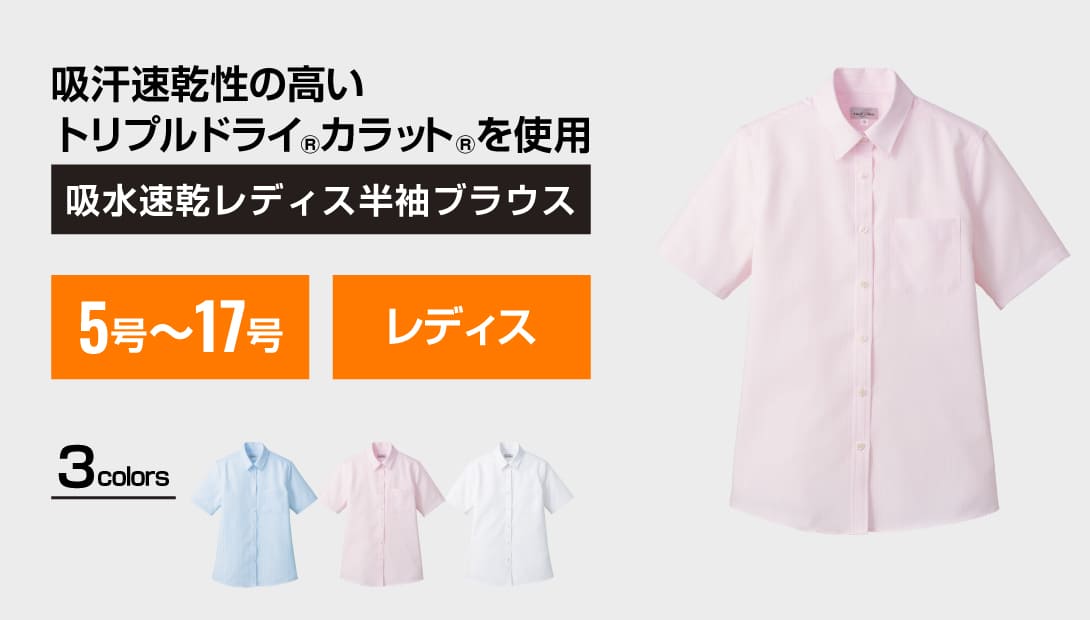 優れた吸水速乾性を持つトリプルドライ®カラット®素材を使用し、汗冷えやベタつきを抑えてくれます。肌面が凹凸状になっていて、肌に触れる凸部分が撥水ポリエステル、凹部分が普通の吸水性ポリエステルという特殊構造で、肌への濡れ戻りが大幅に軽減されているのがポイント。女性の大敵である冷え。夏場、ただでさえクーラーで冷えるオフィスや電車などで冷えに拍車をかける汗冷えから女性を守ります。汗ばむ季節やシーンには大変おすすめな一着です。