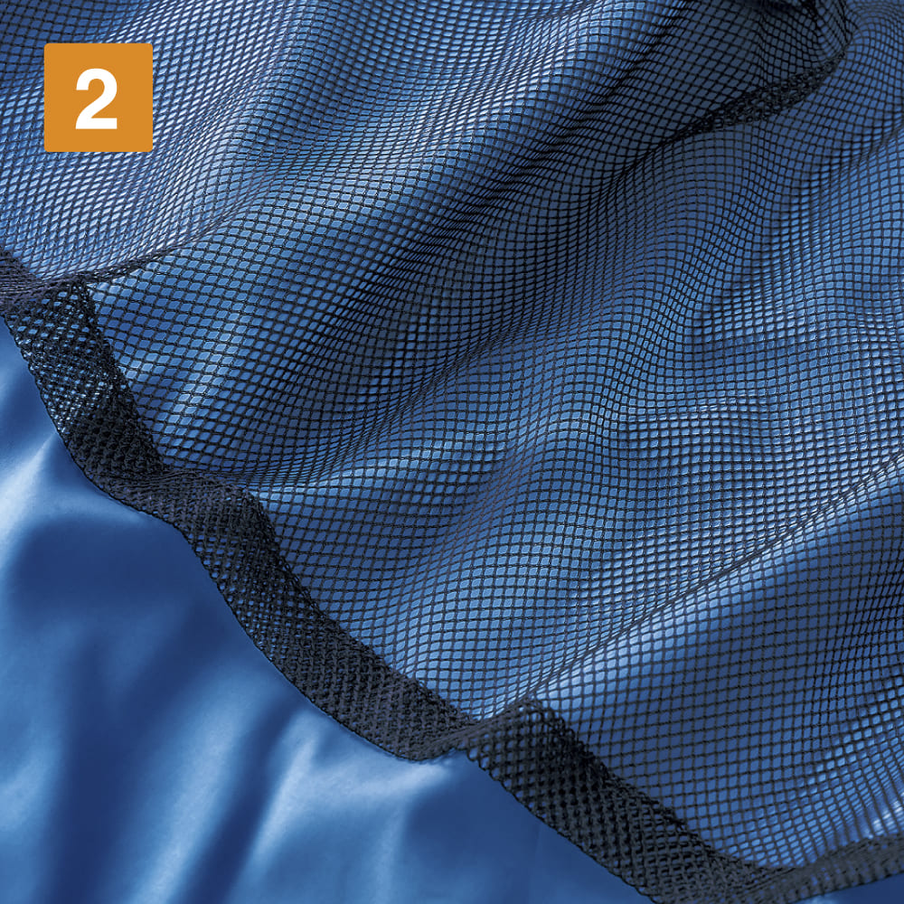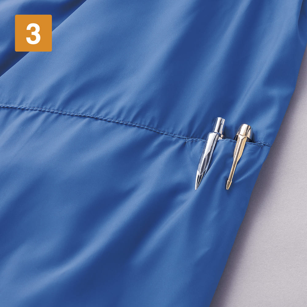 シンプルなデザインに高い機能性をプラスしたベーシックジャンパー。本体には、上品な光沢とふわっとやわらかな風合いが特徴の高密度のマイクロタフタ素材が使用されています。さらりとした肌ざわりで、デイリーにノンストレスに着られる一着に。生地には撥水加工も施されているため、多少の雨や汚れにも強く、アウトドアや作業現場での着用にも対応しています。背当て部分にはハーフメッシュを採用し、汗をかいてもベタつきにくく快適に着用可能です。