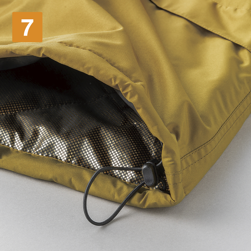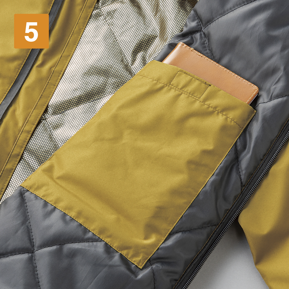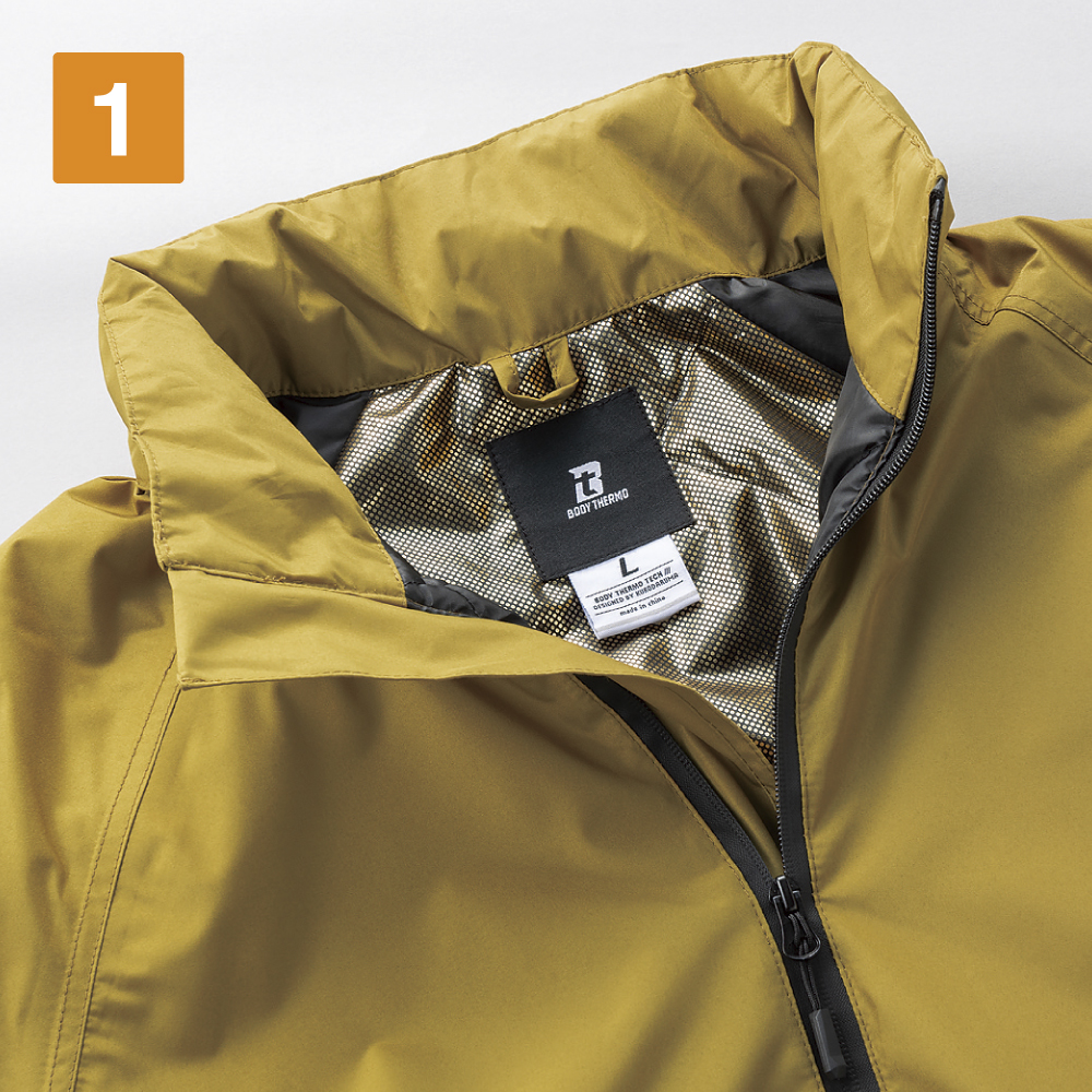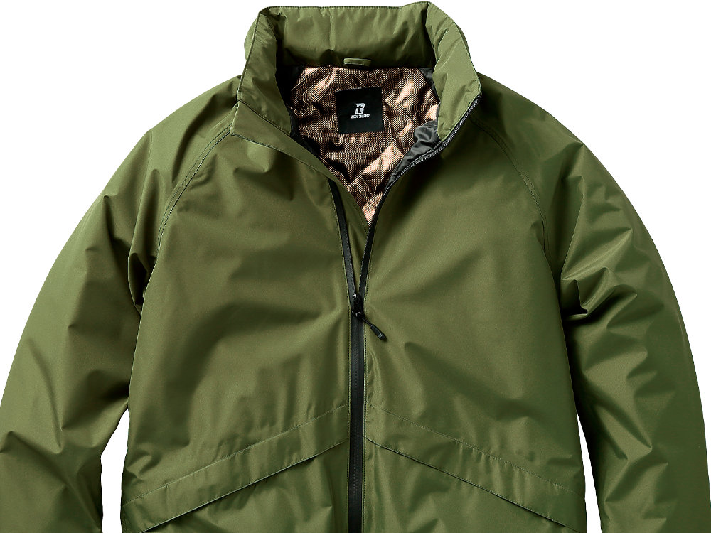 冬場のあらゆる天候に対応した万能防寒ジャケットです。最大の特徴は、高い防水性と透湿性を備えていること。耐水圧10,000mm、透湿性10,000g/m²/24hを誇る生地が、雨や雪の侵入を防ぎながらも蒸れた空気を逃がし、常に快適な着心地をキープします。軽量かつなめらかな肌ざわりのポンジ素材はシワになりにくく、作業時の動きやすさも抜群。中綿に加えて、裏地のゴールドアルミプリントの魔法瓶効果により衣服内の暖かさをしっかりとキープ。タフな環境でこそ輝く一着です。