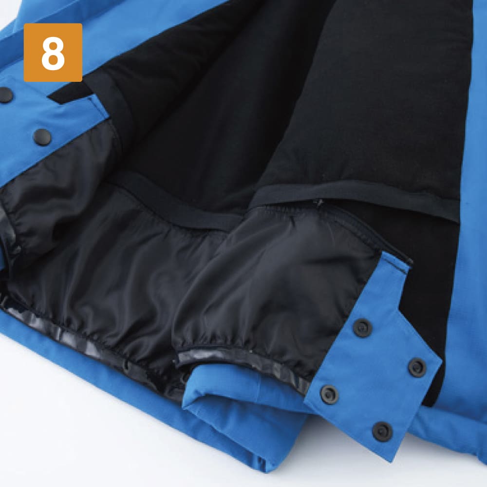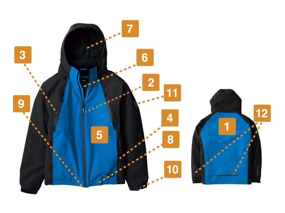 動きやすく、冬の過酷な屋外環境にも対応できる防水&防寒ブルゾンです。表地には縦の伸長率9.5%、横の伸長率11%を誇る2WAYストレッチ素材が採用され、アクティブシーンでもストレスフリーな着心地を実現しています。また、グラフェン中綿による抜群の保温性で体温を逃がさずキープ。さらに、防水性能に加えて撥水加工が施されることで汚れや水をはじきます。裏地は制電起毛ニットが使用され、JIS T 8118の規格に適合した帯電防止性能を備えているのもポイント。冬のメインアウターとして大活躍してくれます。