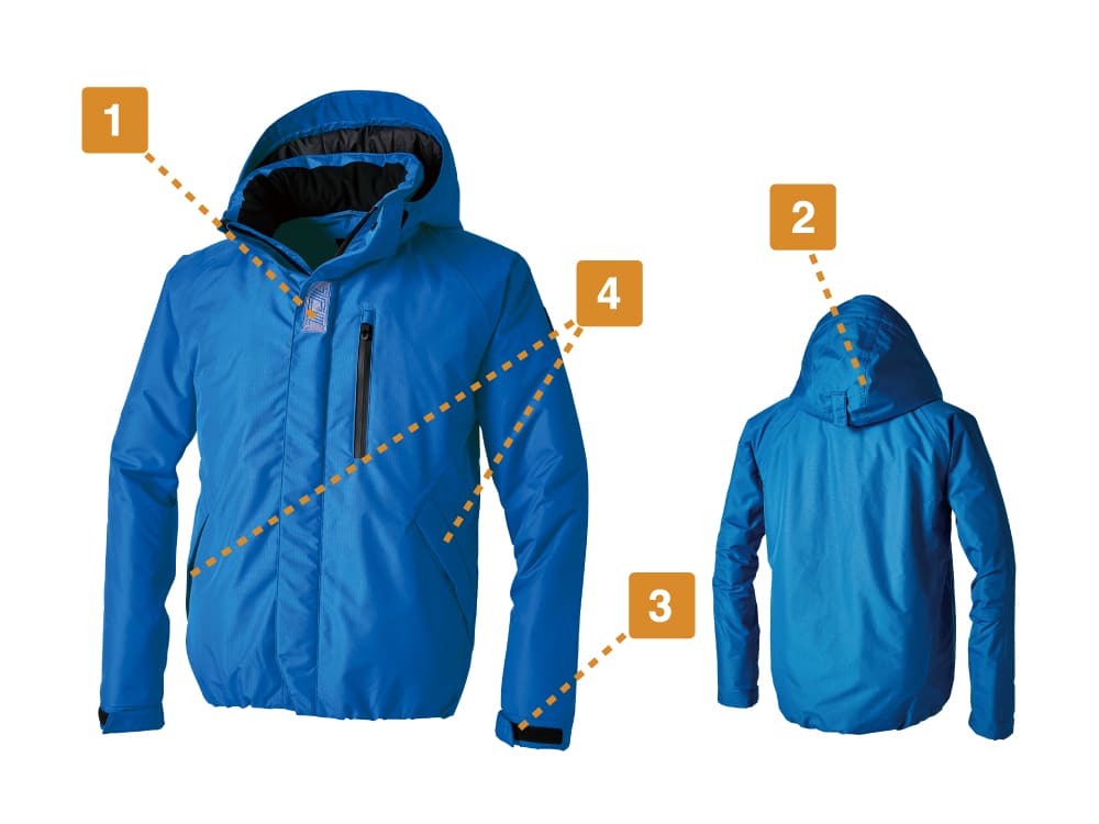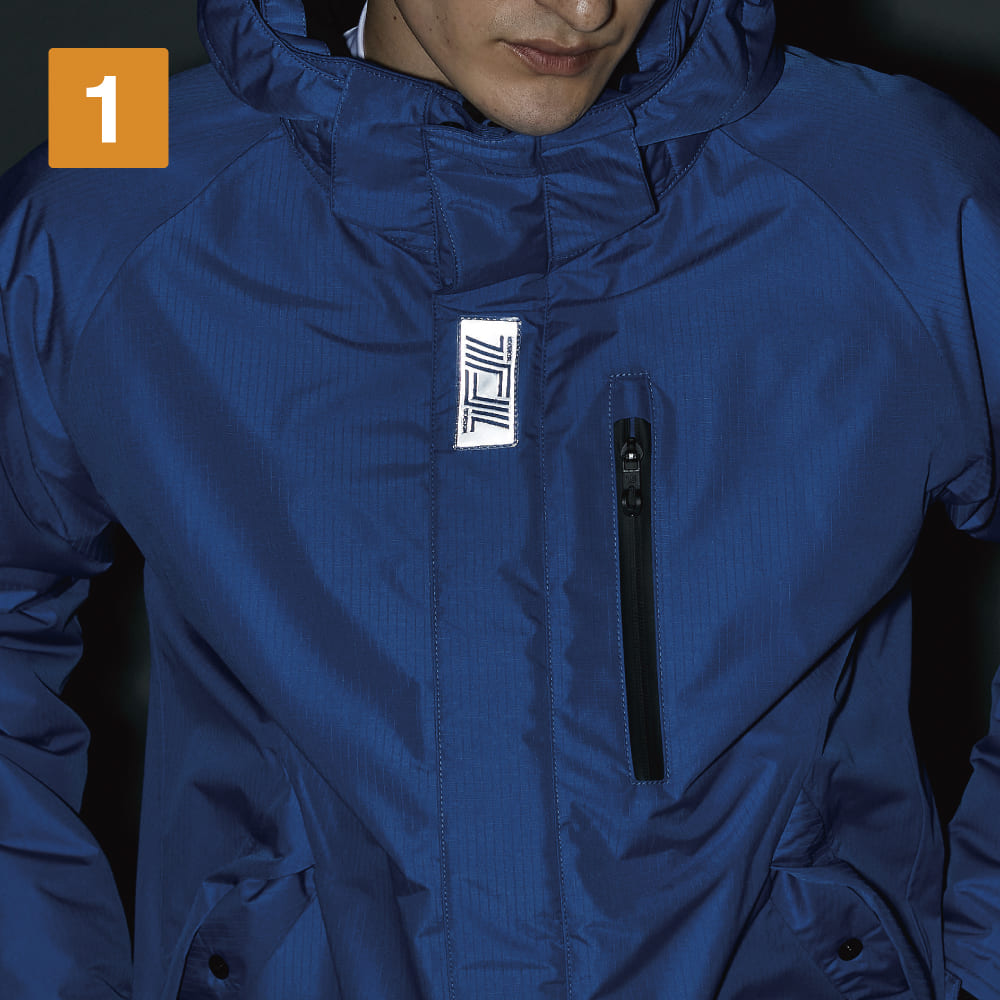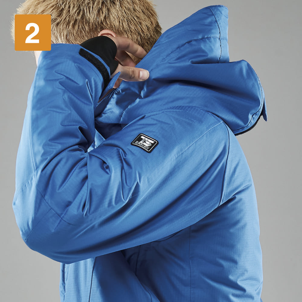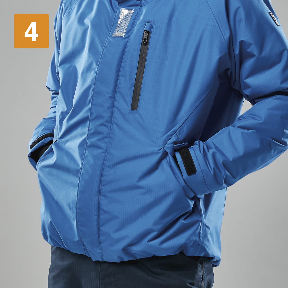 ミニマルかつスタイリッシュなデザインに、充実の機能性を備えた防水&防寒ブルゾン。耐水圧5,000mmと透湿性2,000g/m²/24hrの優れた防水性能で、突然の雨や雪にも対応できる一着になっています。安全性にも配慮されており、前立てのワッペンに反射材が使用されることで、夜間や暗い場所での高い視認性をキープ。ふっくらとした中綿にプラスして、インナーカフや裾のリブなど冷気の侵入を防ぐディテールが、さらに防寒性をアップしています。