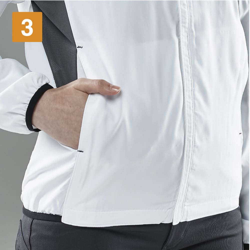 超軽量&ストレッチ生地による動きやすさが魅力のワークジャケット。シャープなシルエットデザインで、洗練された印象の一着です。生地は撥水加工と防汚加工が施されているため、汚れや水を吸収しやすいのもポイント。袖口や裾にはストレッチパイピングが施されており、体にやさしくフィット。生地がバタつきにくくなっています。また、JIS T8118に適合した帯電防止性能を備えることで、静電気の発生がNGの現場など幅広い現場での安全な着用が可能です。
