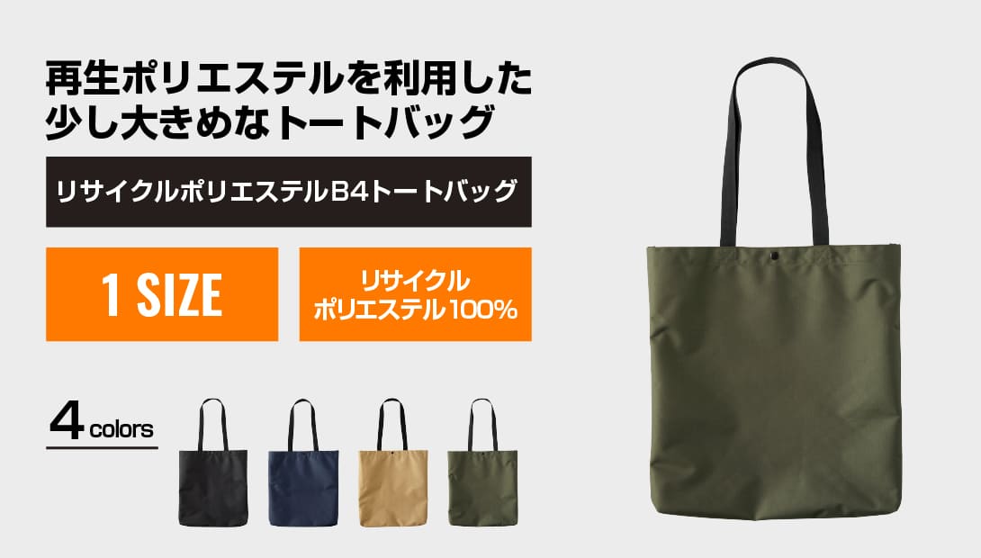 RPB-401は、再生ポリエステル素材を使用したエコフレンドリーなトートバッグです。B4サイズに対応しており、書類や資料を収納するのにぴったり。肩掛けがしやすい長めの持ち手で、通勤・通学やイベント時の資料運びにも便利です。刺繍やプリントが可能で、ロゴやデザインを追加すれば、オリジナリティ溢れるプロモーションアイテムとして活用できます。軽量ながらも耐久性が高く、サステナブルな選択を求める企業様や団体様に人気の商品です。