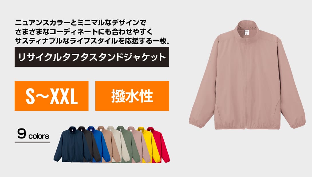 MJ0085は、環境意識を持つ法人様や団体様におすすめのアイテムです。軽量な素材とシンプルなデザインで、ロゴやスローガンを際立たせることが可能。環境への配慮とスタイリッシュなデザインを両立した、今の時代に最適なジャケットです。