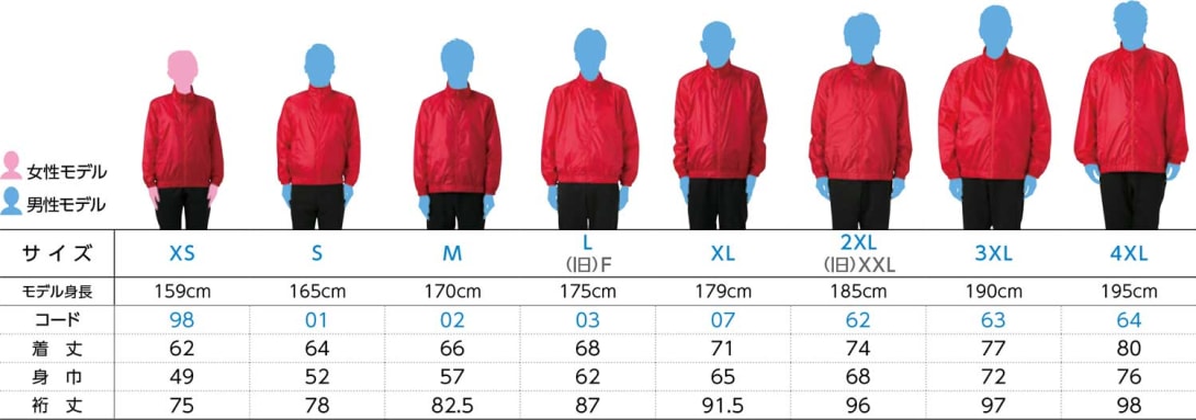 | ※XS、S、3XL、4XLサイズは在庫限りで廃番となります。 |
