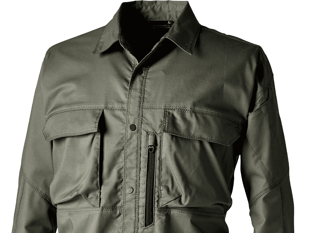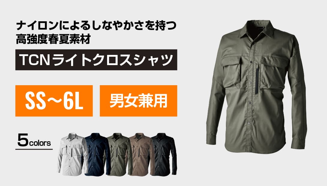 TCNライトクロス素材は、軽量かつしなやかなナイロン混紡で、作業中の動きやすさをサポートします。肩や肘の動きにフィットするカッティングデザインが、スムーズな動作を可能にします。耐摩耗性も高く、ハードなワークシーンでも安心して着用可能。収納力の高いフロントポケットとスリムなシルエットが、プロフェッショナルな印象を与えます。