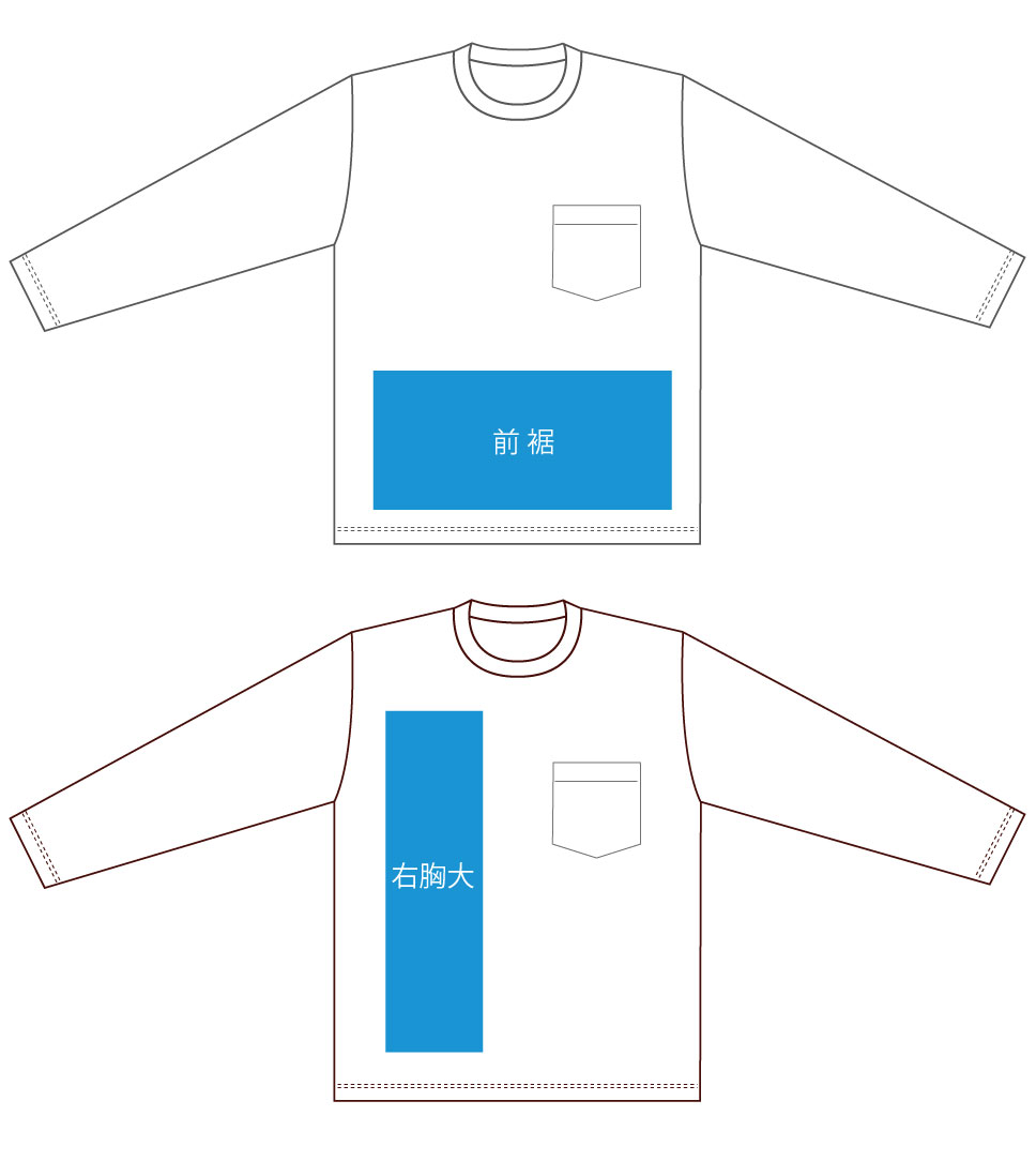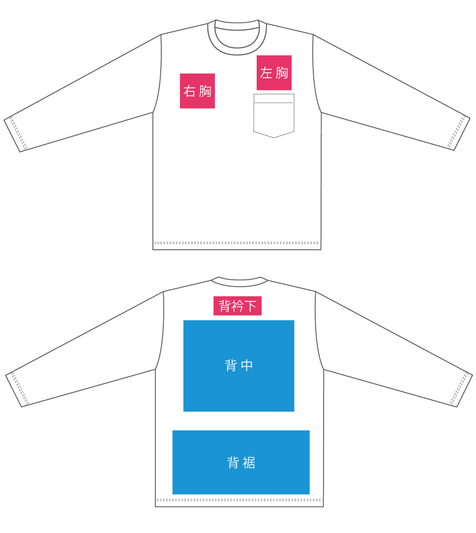 ピンク部分は、刺繍・プリントどちらもOK