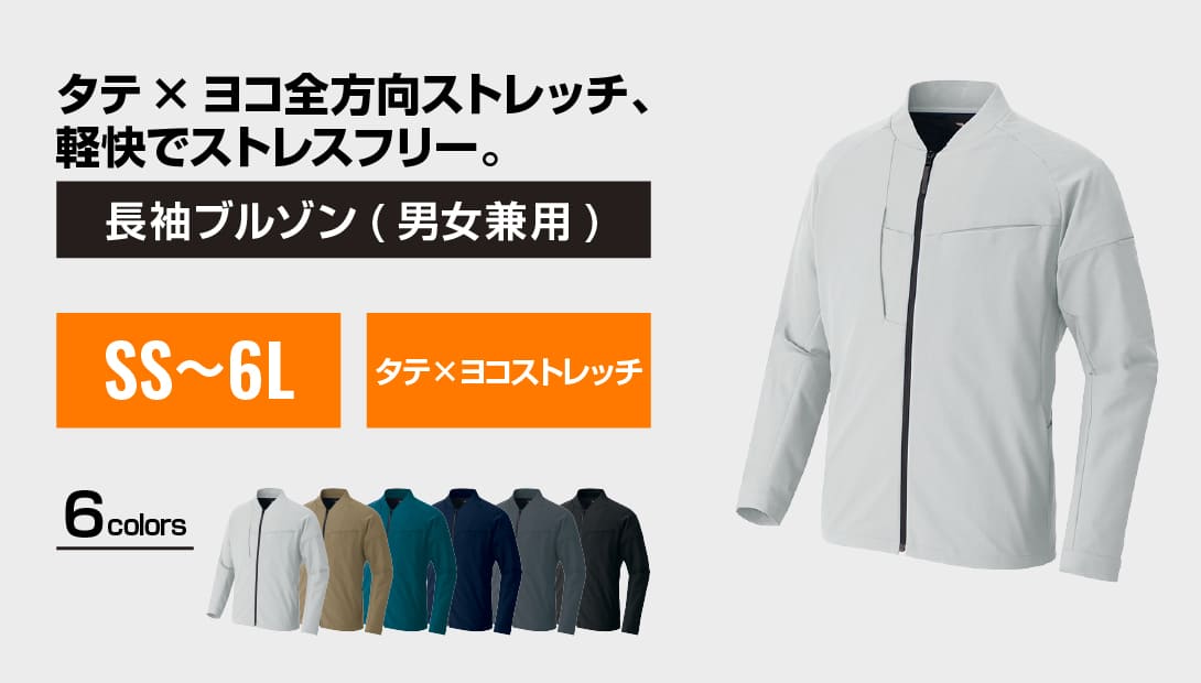 タテにもヨコにも伸縮するストレッチ素材を使用し、あらゆる動作にフィットする快適な着心地を実現しました。優れた吸汗速乾性で、汗を素早く吸収・拡散し、長時間の着用でも快適なコンディションを維持。シンプルかつ機能的なデザインで、工場やメンテナンス、オフィスワークや接客業など、さまざまなシーンに適した万能ブルゾンです。