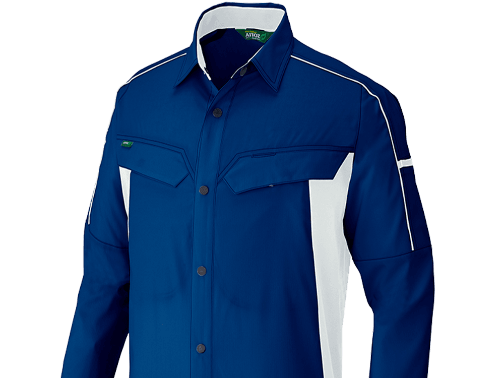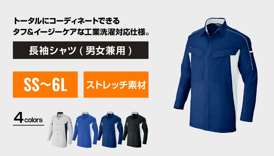 エコ素材ながらも高い耐久性とストレッチ性を兼ね備えた、ワークシーンに最適なシャツです。着心地の良さと機能性を両立しているので、現場作業やオフィス業務など幅広い用途で活躍します。長袖タイプなので、オールシーズン使いやすく、企業ユニフォームとしてもおすすめです。