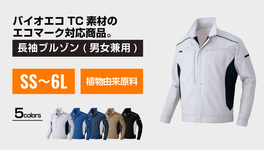 環境に優しいPLANTPET®素材を採用し、快適な着心地と動きやすさを実現した長袖ブルゾン。ストレッチ性の高い生地と立体裁断により、腕や肩を大きく動かす作業でもストレスを軽減します。軽量設計で長時間の着用も快適。豊富なポケットや機能的なデザインにより、作業効率の向上にも貢献します。エコマーク認定を取得しており、環境配慮型ユニフォームとしてもおすすめです。