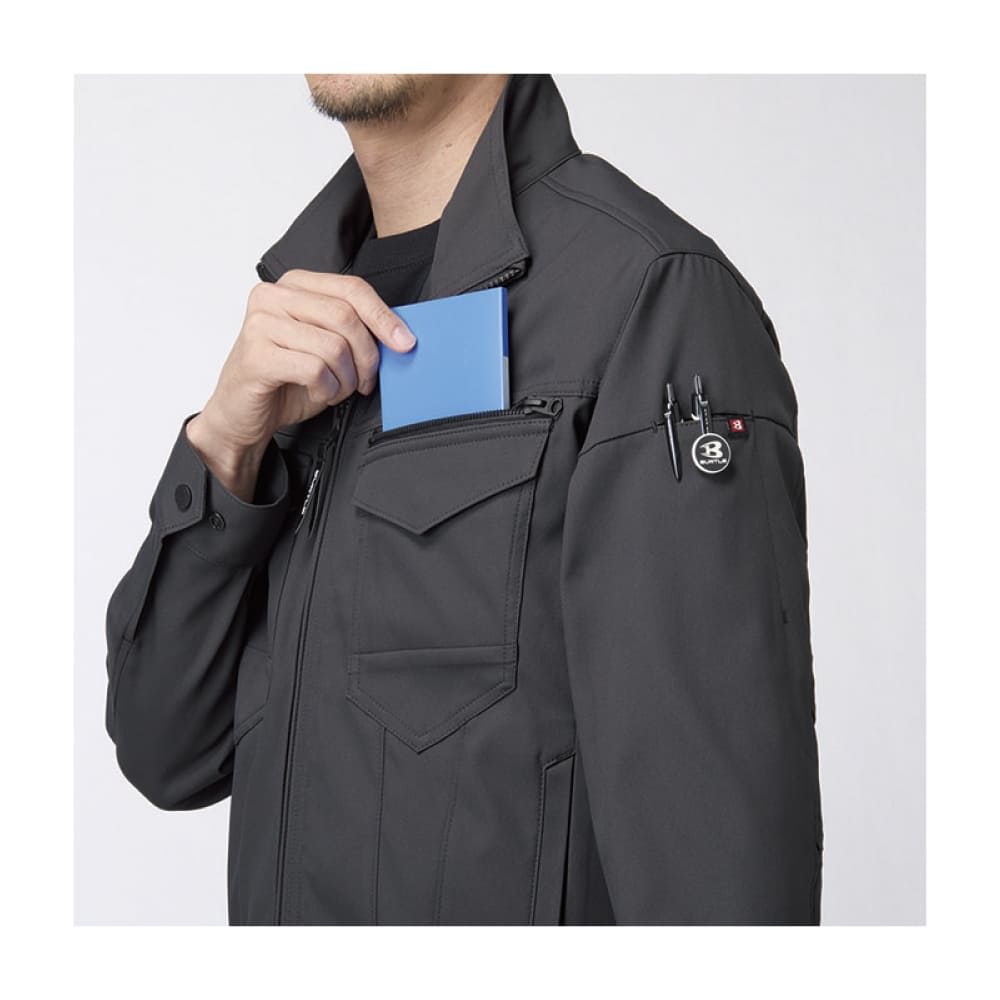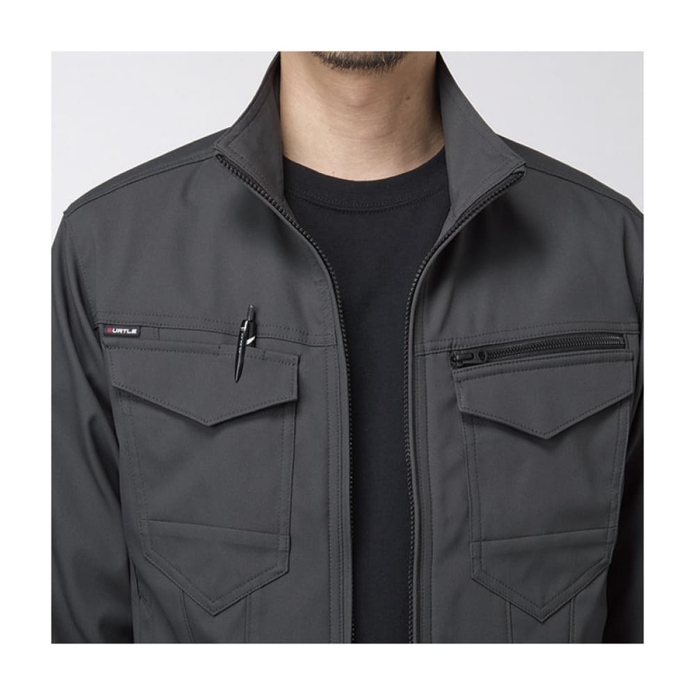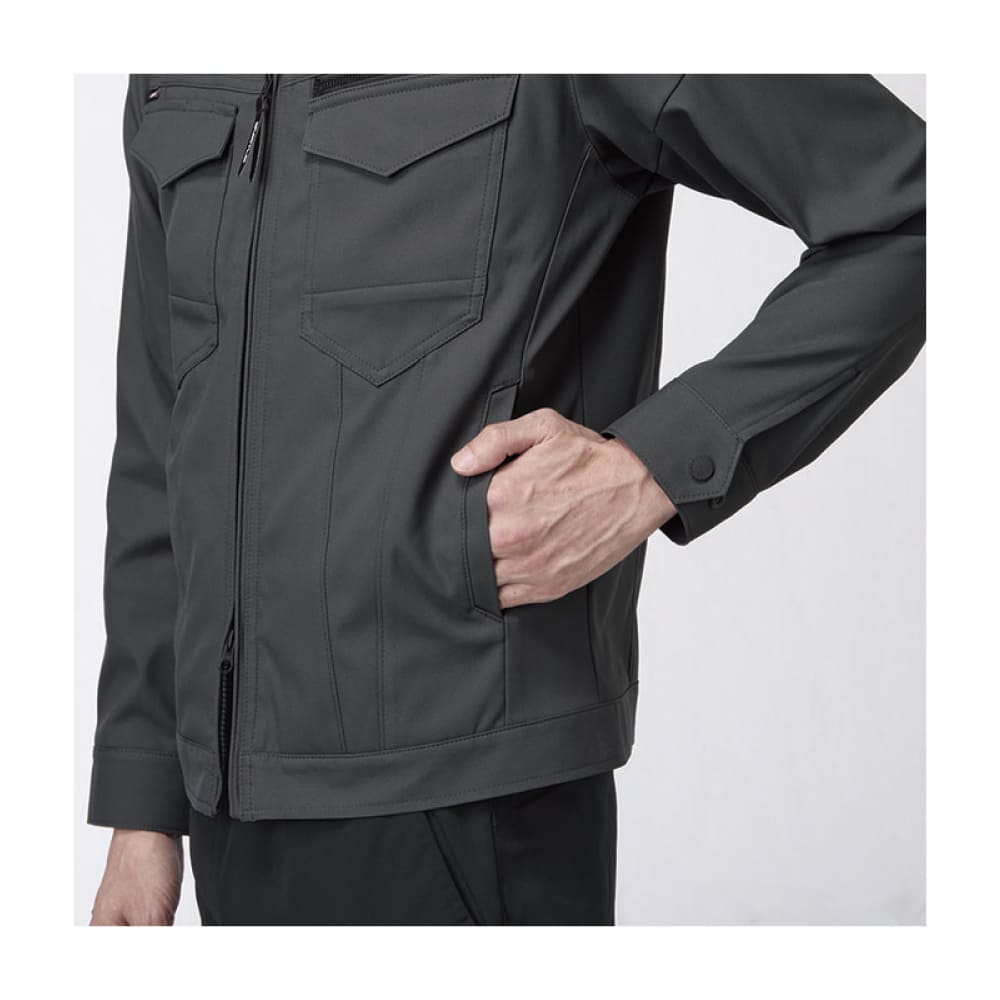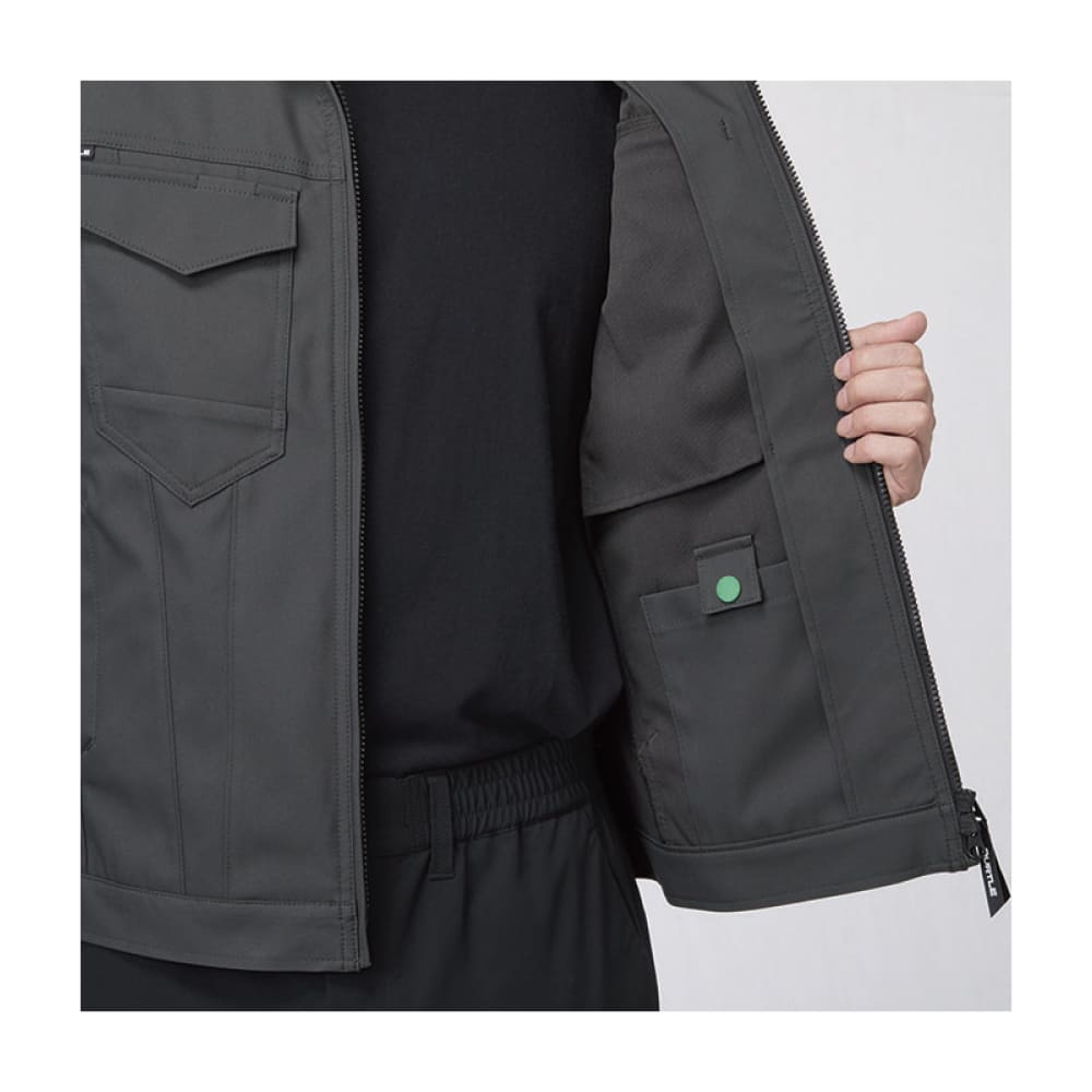 高いストレッチ性で動きやすさを確保したユニセックスジャケット。JIS規格 T8118に適合した制電素材を使用し、安全性に配慮しています。トーレ製リサイクル繊維「エコディア®」を採用し、環境にも優しい仕様。ダブルファスナーや豊富なポケットを備え、作業時の使いやすさも抜群です。男女問わず着用できるシンプルなデザインで、刺繍やプリント加工との相性も良く、法人ユニフォームに最適です。