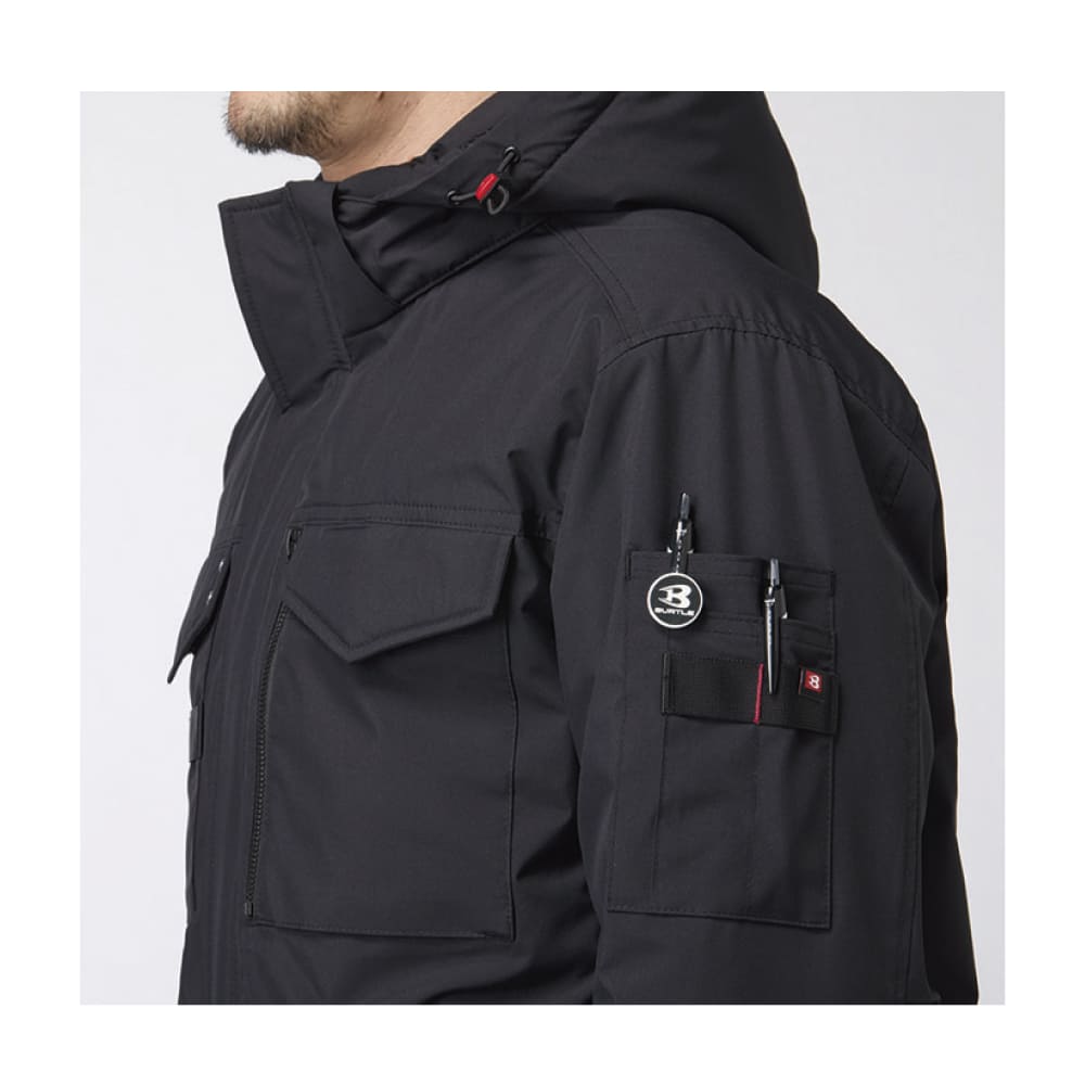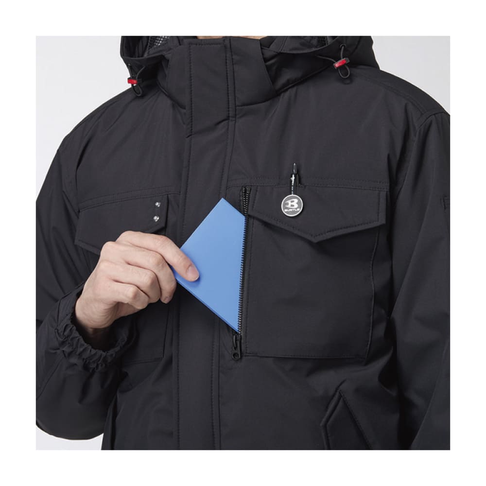 防水ラミネート加工を施したマイクロソフトシェル素材を採用し、耐水圧10,000mmの高い防水性を実現。軽量で動きやすく、裏地の中綿でしっかり保温します。胸や袖に配置された多機能ポケットは収納性に優れ、作業やイベント時にも便利。シンプルかつミリタリーテイストなデザインは刺繍やプリントも映え、法人ユニフォームとして活躍します。