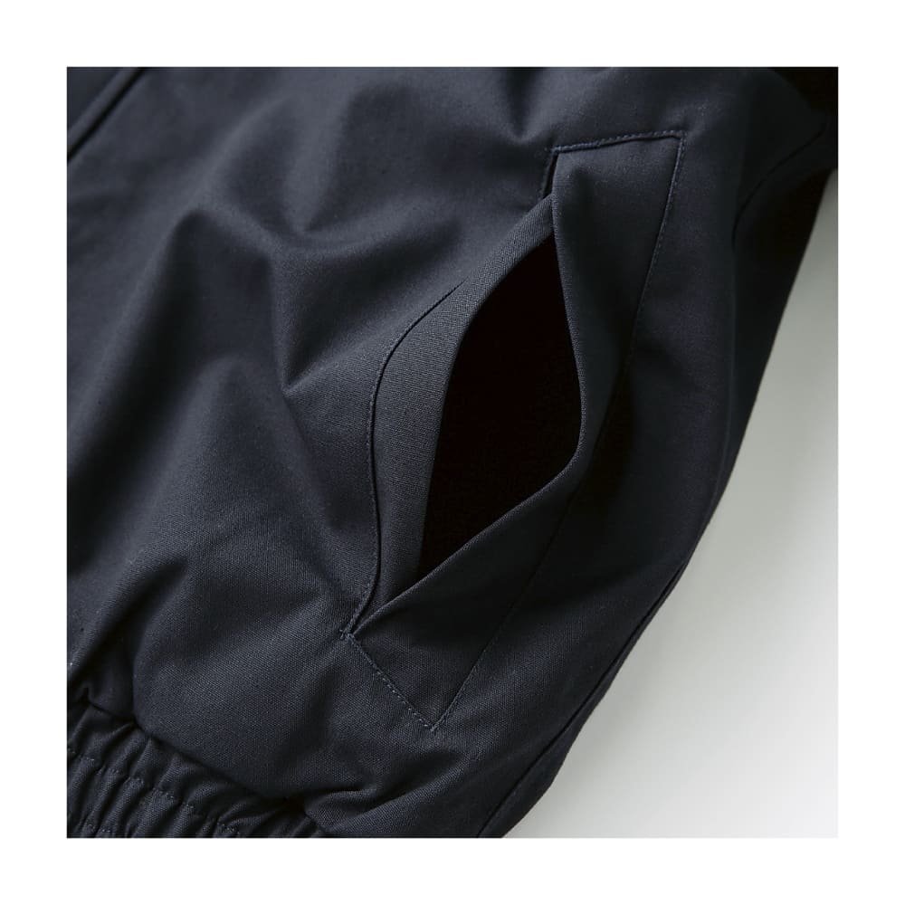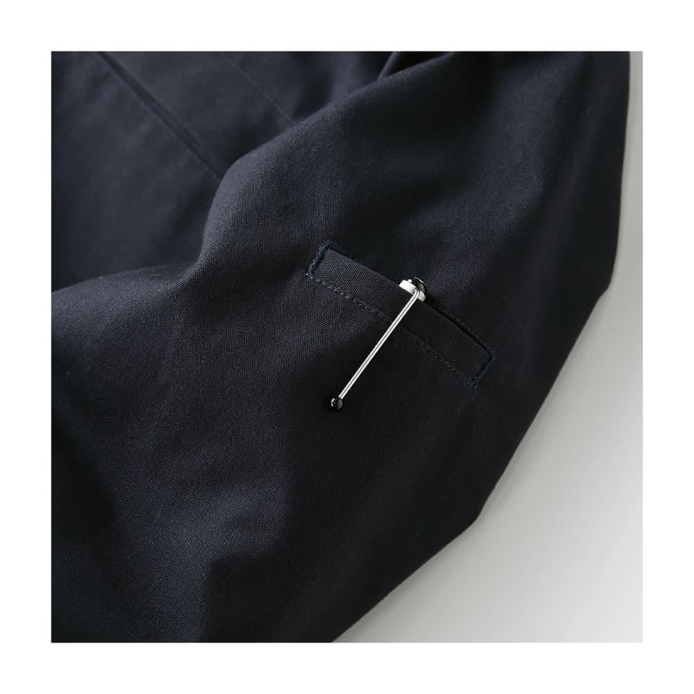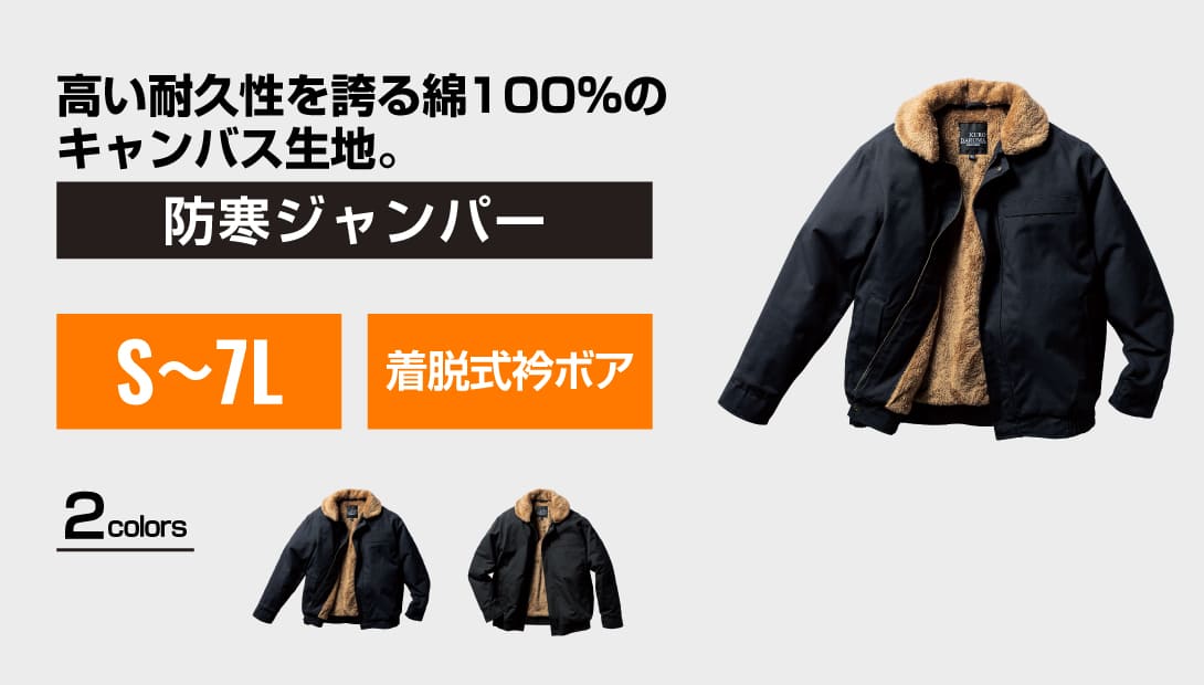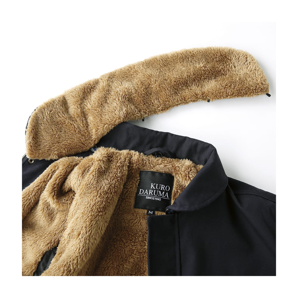 表地には耐久性の高い綿100%キャンバス生地を使用。裏地と襟元にはボアを備え、防寒性を確保しています。襟ボアは取り外し可能で、着用シーンに合わせてアレンジ可能。袖口や裾はリブ仕様で冷気の侵入を防ぎ、快適さを維持します。シンプルながら存在感のあるデザインは、法人ユニフォームやイベント用ウェアとしても適した仕様です。
