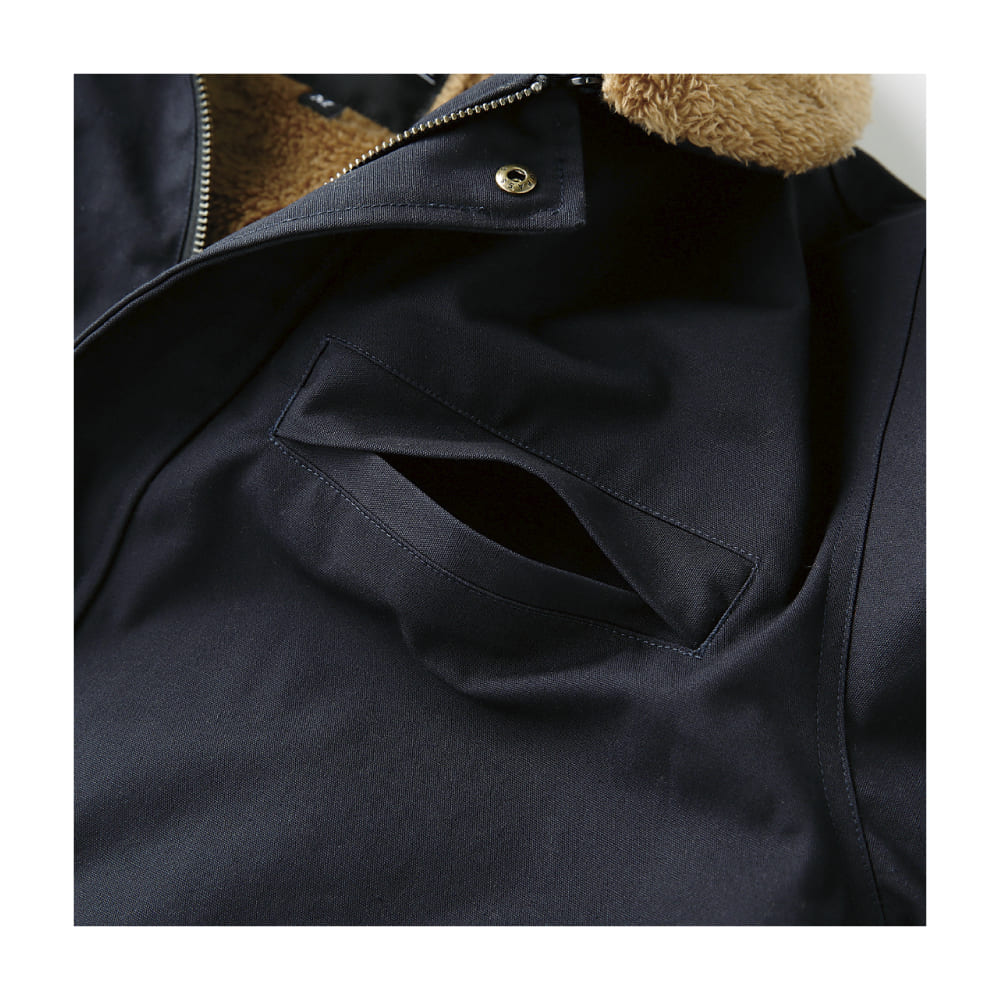 羽織った瞬間にボアの暖かさをしっかり感じられ、冬場の屋外作業でも安心です。キャンバス地は丈夫で長く使えそうな安心感があります。襟ボアを外すと印象が変わり、シーンや好みに合わせて着られるのも便利。シンプルなデザインなので刺繍やプリントを入れると企業ユニフォームとして格好良く仕上がります。現場でもイベントでも存在感のある一着だと思います。