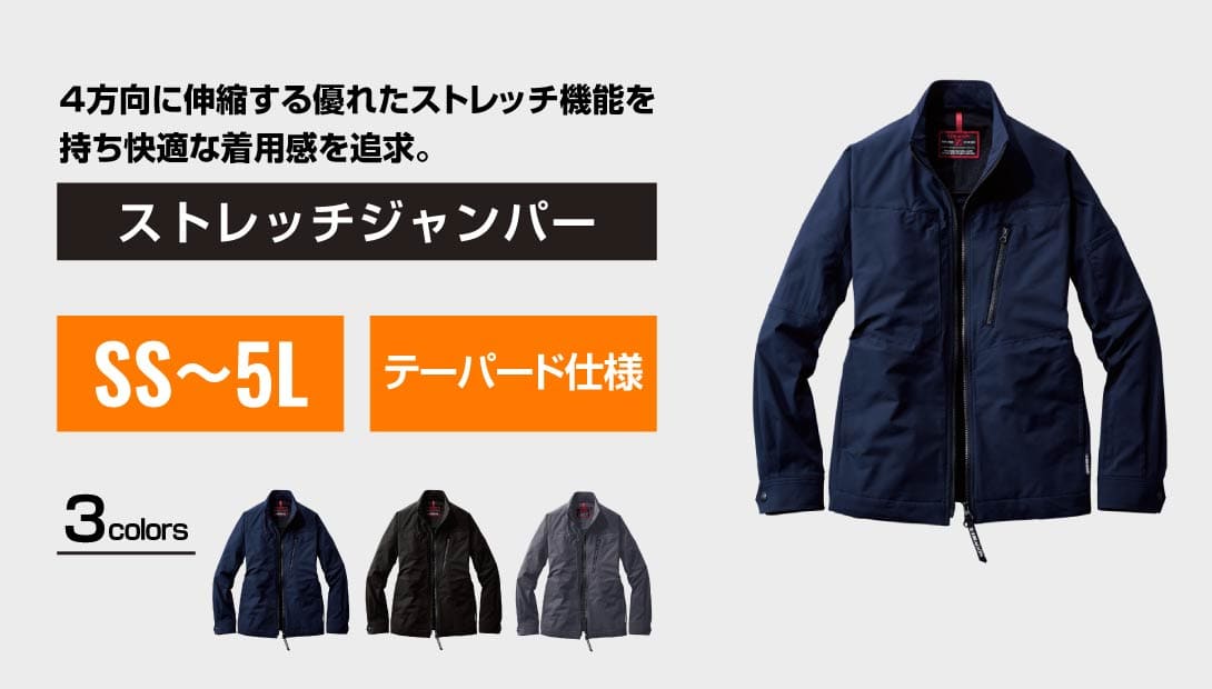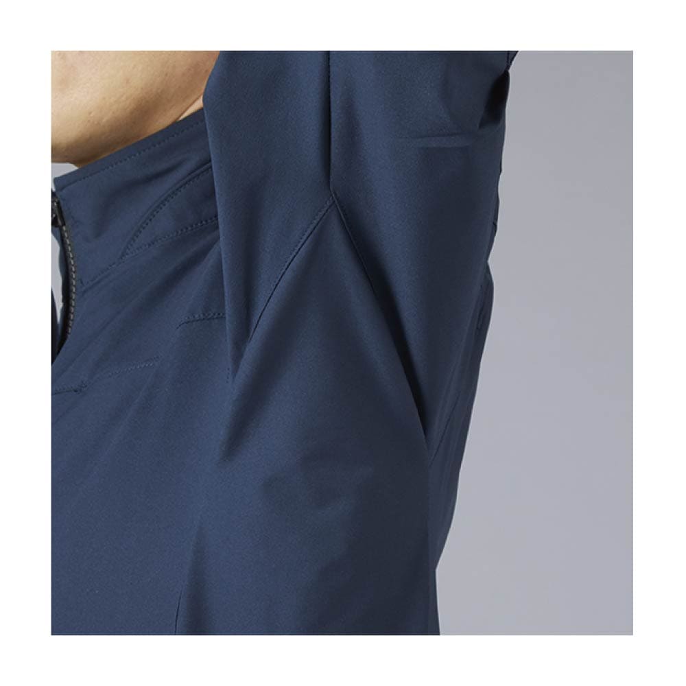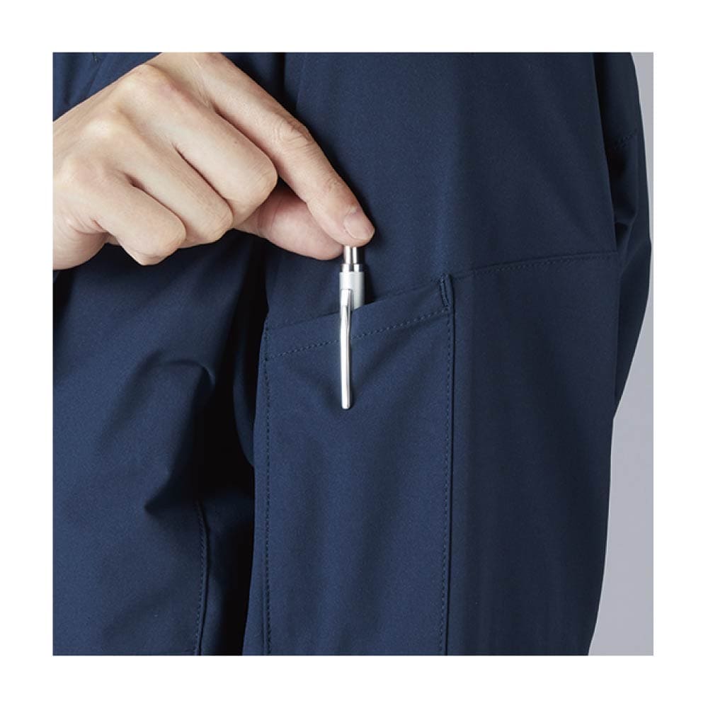 実際に着用すると、軽さとストレッチ性の高さに驚かされます。スリムフィットながら窮屈さを感じにくく、腕や腰の動きもスムーズ。デザインがシンプルなので、会社名やロゴを刺繍で入れると一気に特別感が増します。現場での機能性はもちろん、スマートな印象を与えたいシーンにもぴったりな1着です。