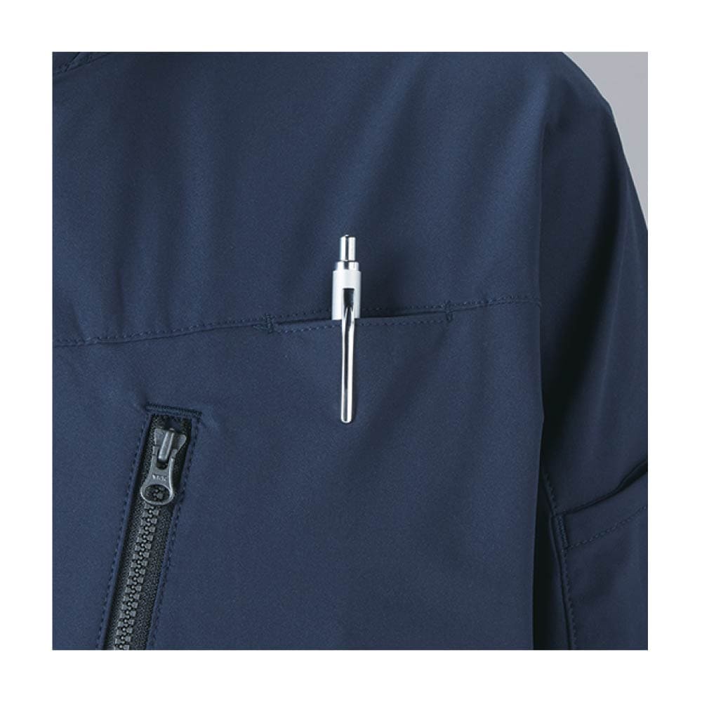 4WAYストレッチ素材を使用し、体の動きにしっかりフィット。テーパード仕様のスリムシルエットがスマートな印象を与えます。胸ポケットやファスナーが機能性とデザイン性を両立し、現場からカジュアルなシーンまで幅広く対応。刺繍やプリントを加えることで、企業ユニフォームやイベント用ジャケットとしても活躍します。